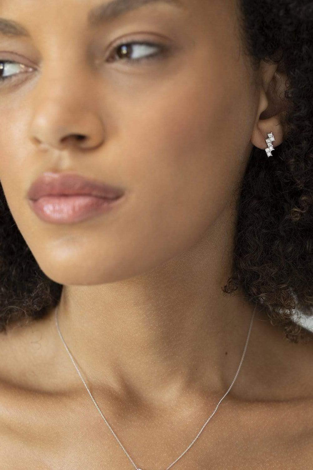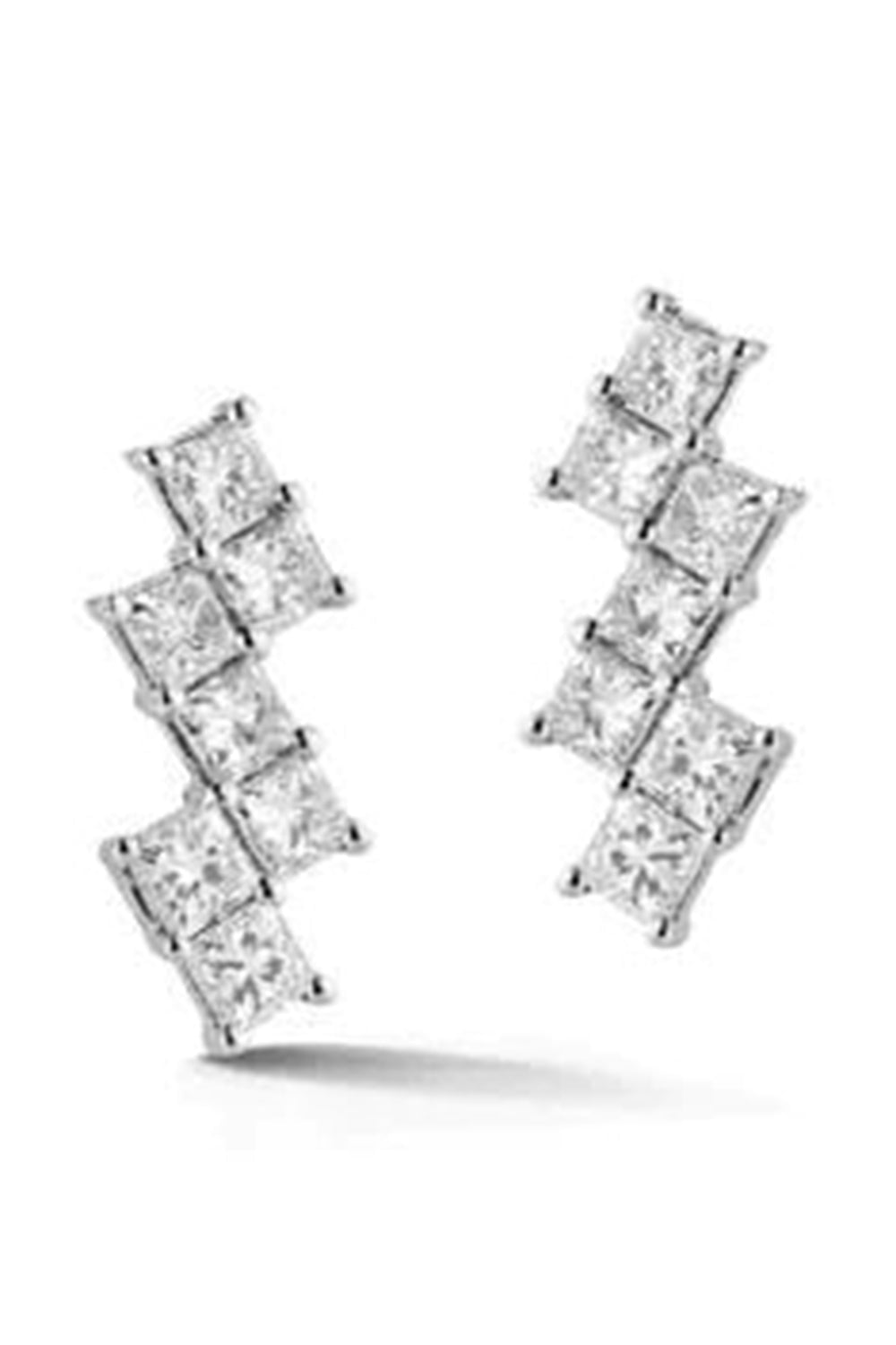 Dana Rebecca Millie Ryan stair step princess cut studs. We can't get enough of these playful and modern stud earrings that feature over three-quarter carats of princess cut diamonds. The geometric motif lends to multiple ways to wear the studs, as well as making them a powerhouse player in your earring collection. You'll swoon over these beauties for years to come.