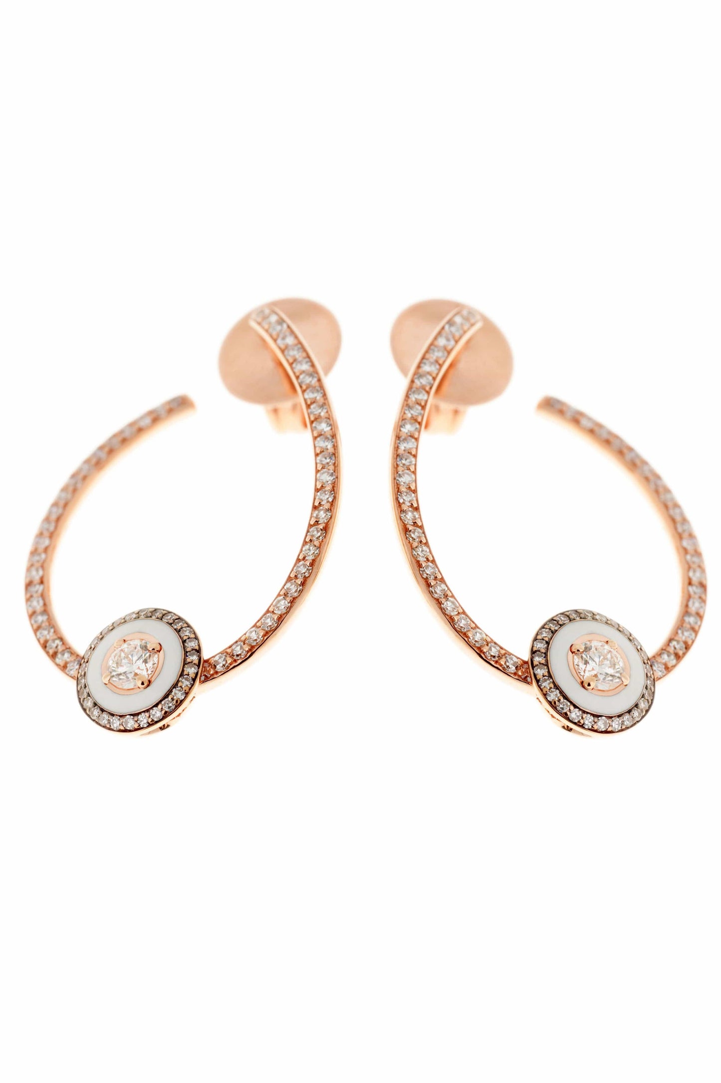 Selim Mouzannar mina hoop earrings in pink gold and white enamel set with diamonds.