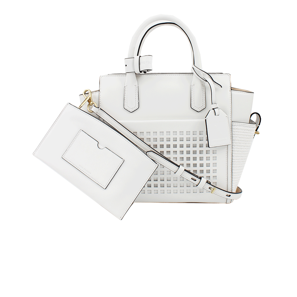 Blue Gray Lining With One Zip Pocket, One Open Pocket, And One Mini Removable Zip Clutch Bag