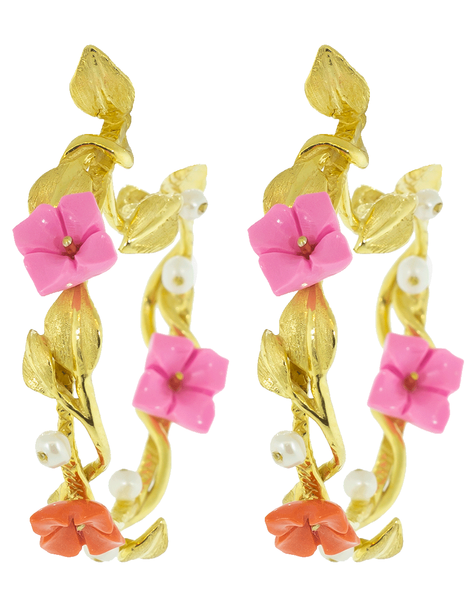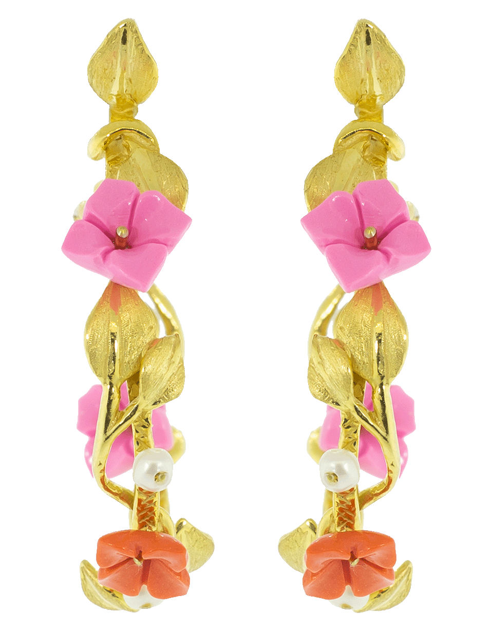 Mini hoops with pearls and pink enamel set in yellow gold from Of Rare Origin.