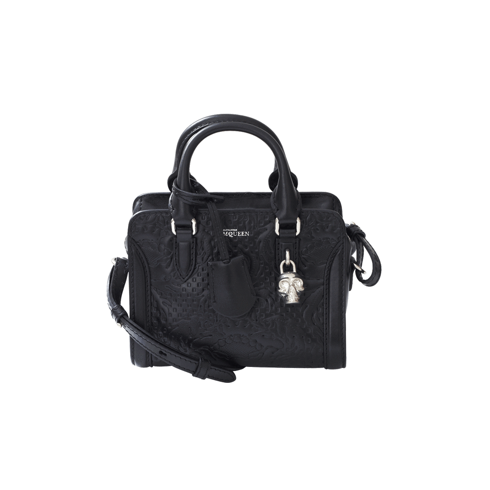 Double Top Zip Closure With Silver Hardware, Leather Luggage Tag, And Signature Silver Skull