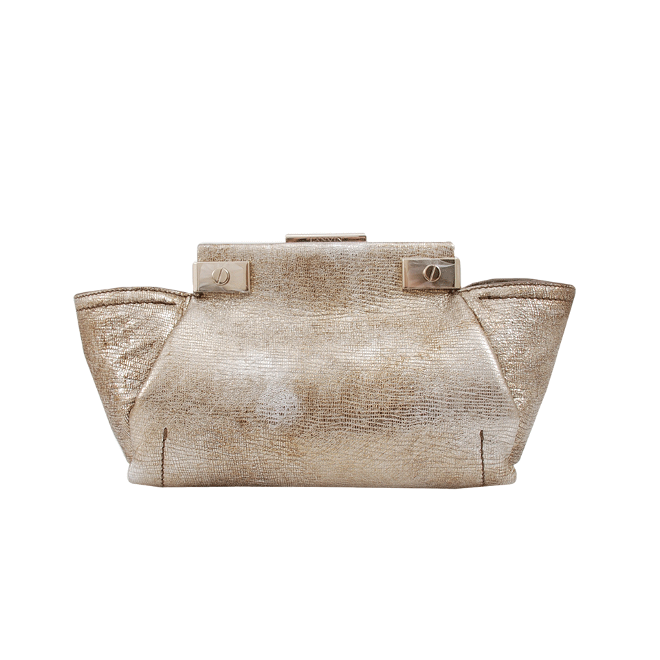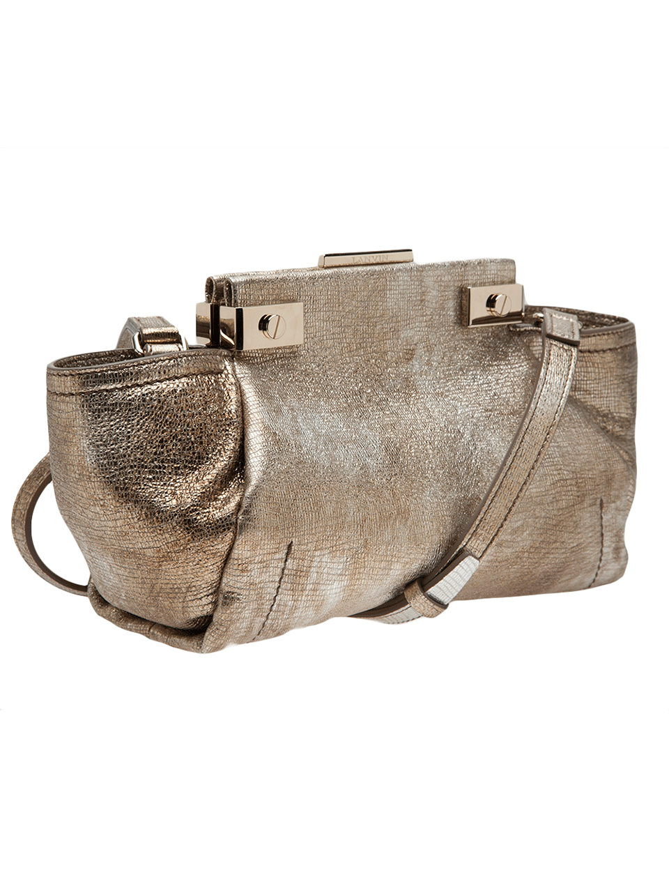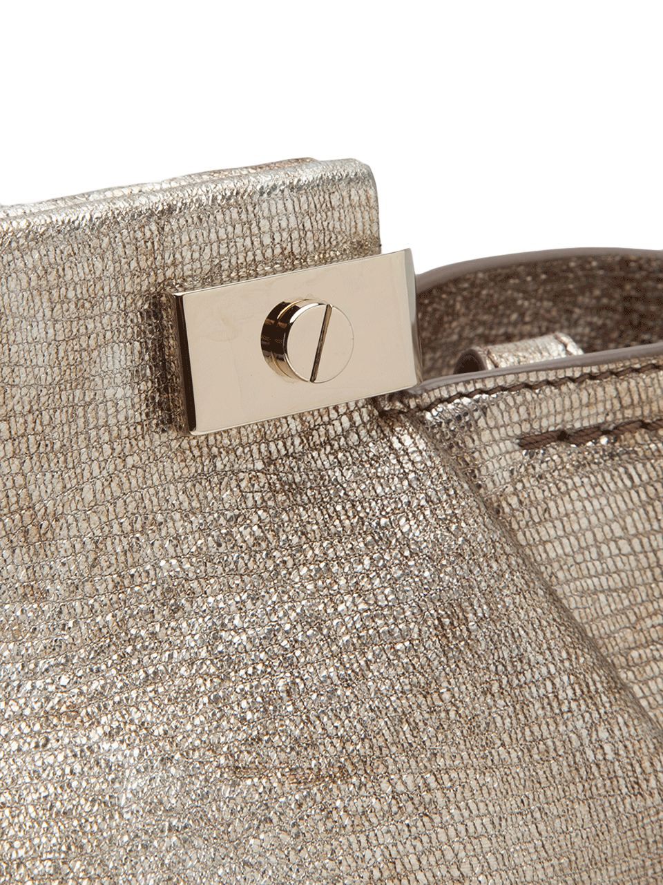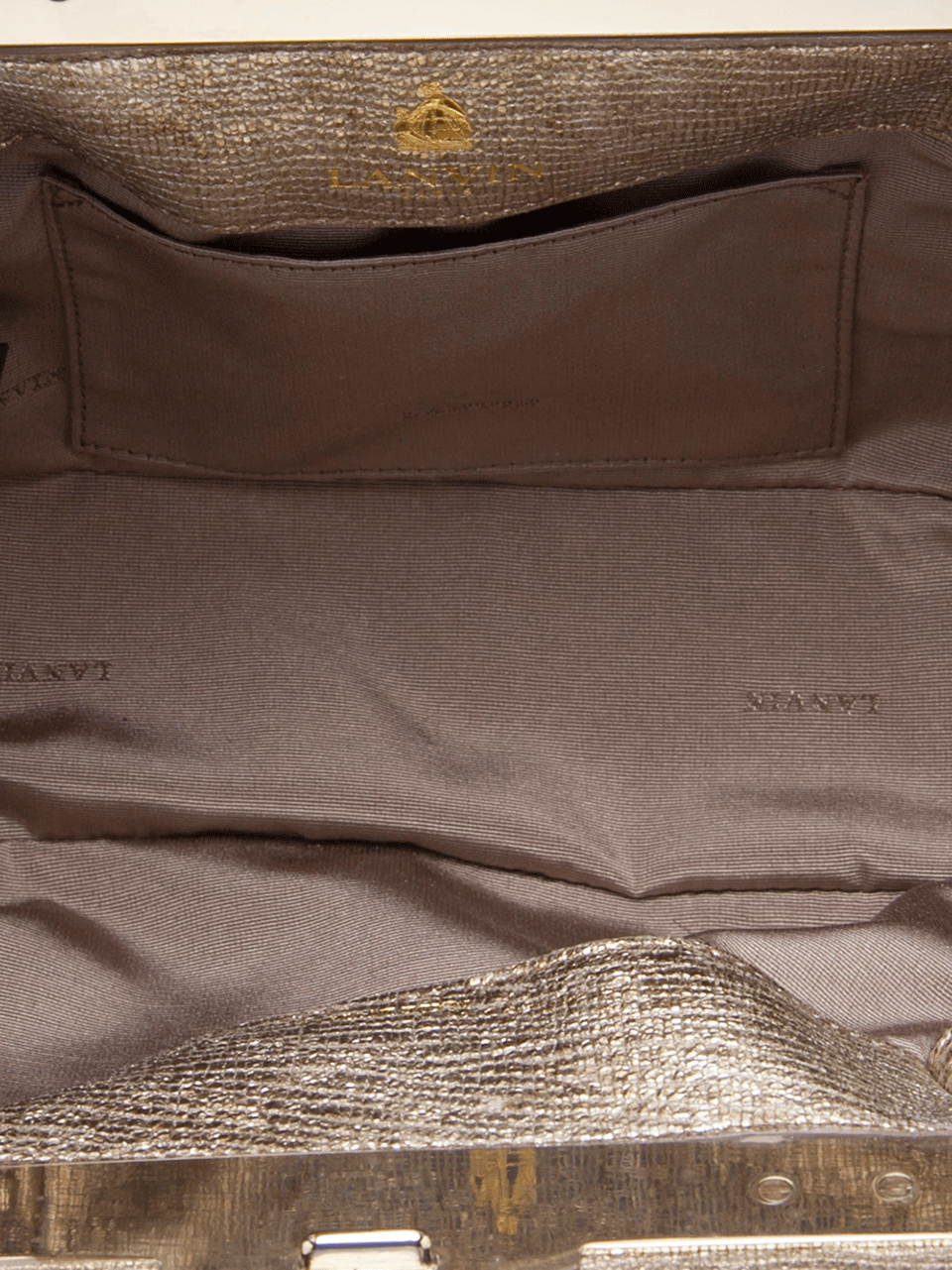 Bring a shimmering icy element to your ensemble this season with Lanvin's mini trilogy handbag in platinum.