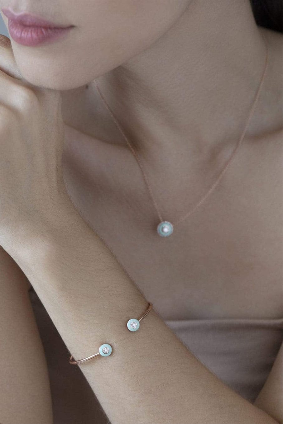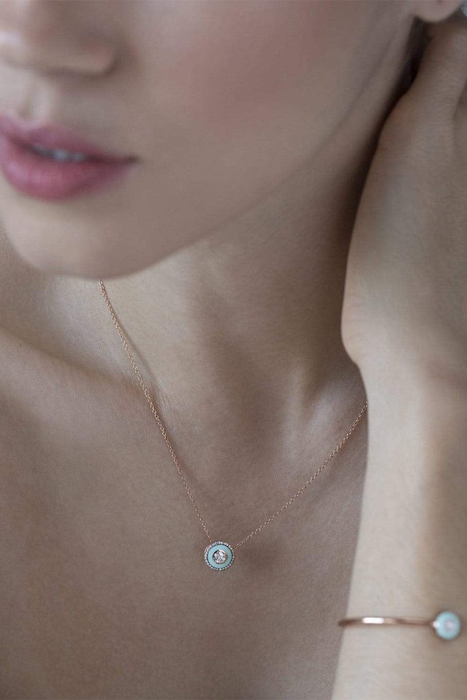 Selim Mouzannar mint green enamel with diamonds mina necklace.