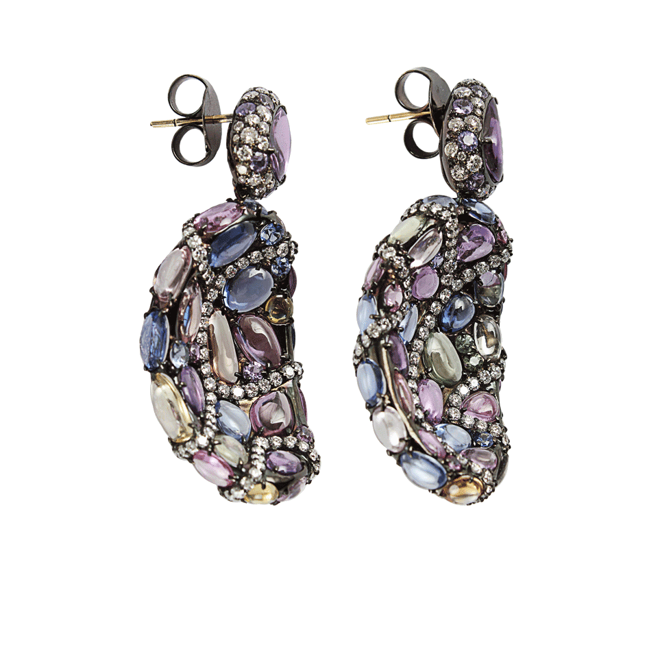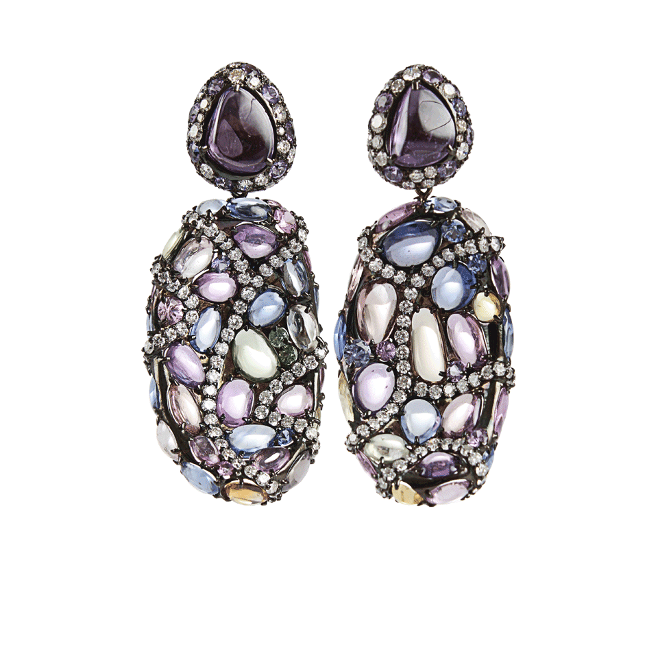 Words can’t express how much we adore the mixed sapphire diamond drop earrings from Arunashi. The light pastel shades and multiple gemstones will add nothing less than sparkle and shine to your look.