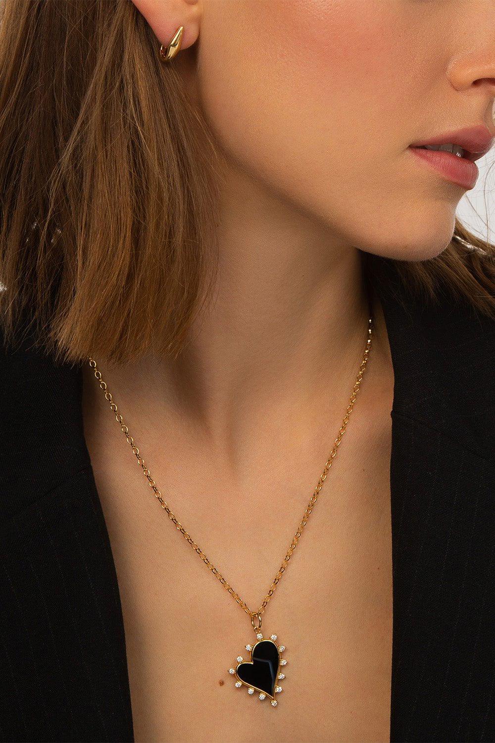 Monica Rick Kosann black agate heart necklace in yellow gold.