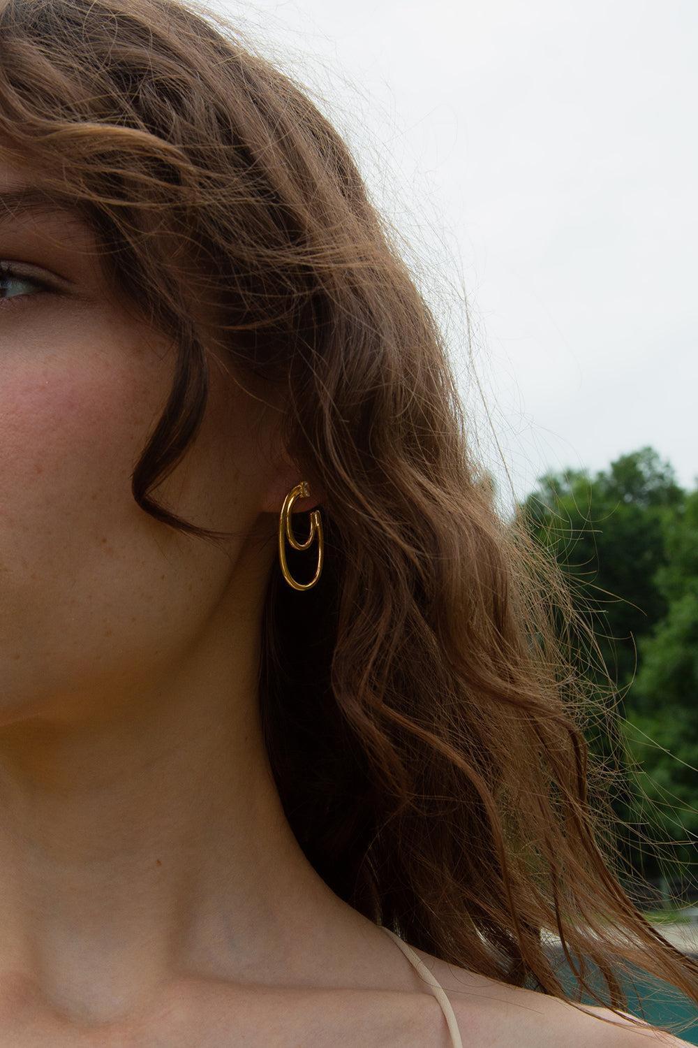 Monica Rich Kosann galaxy wrap hoop earrings in yellow gold.
