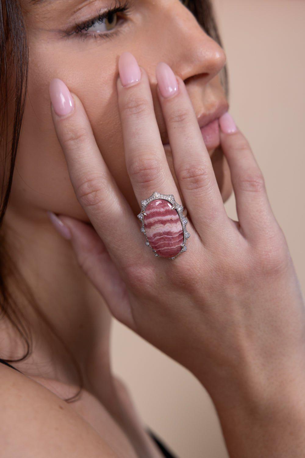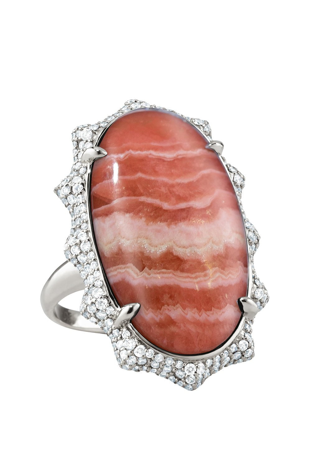 Monica Rich Kosann special edition happiness rhodochrosite sun ring in white gold.