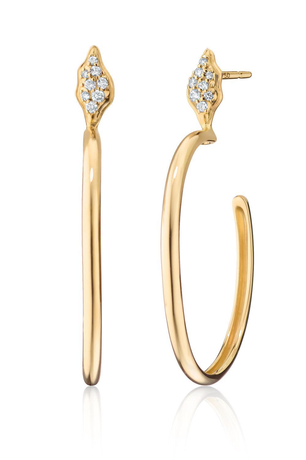 Monica Rich Kosann “wings of mercury” hoop earrings in yellow gold.