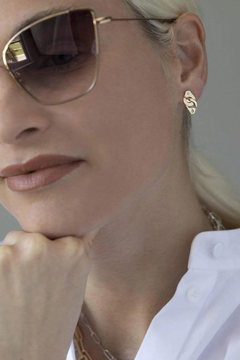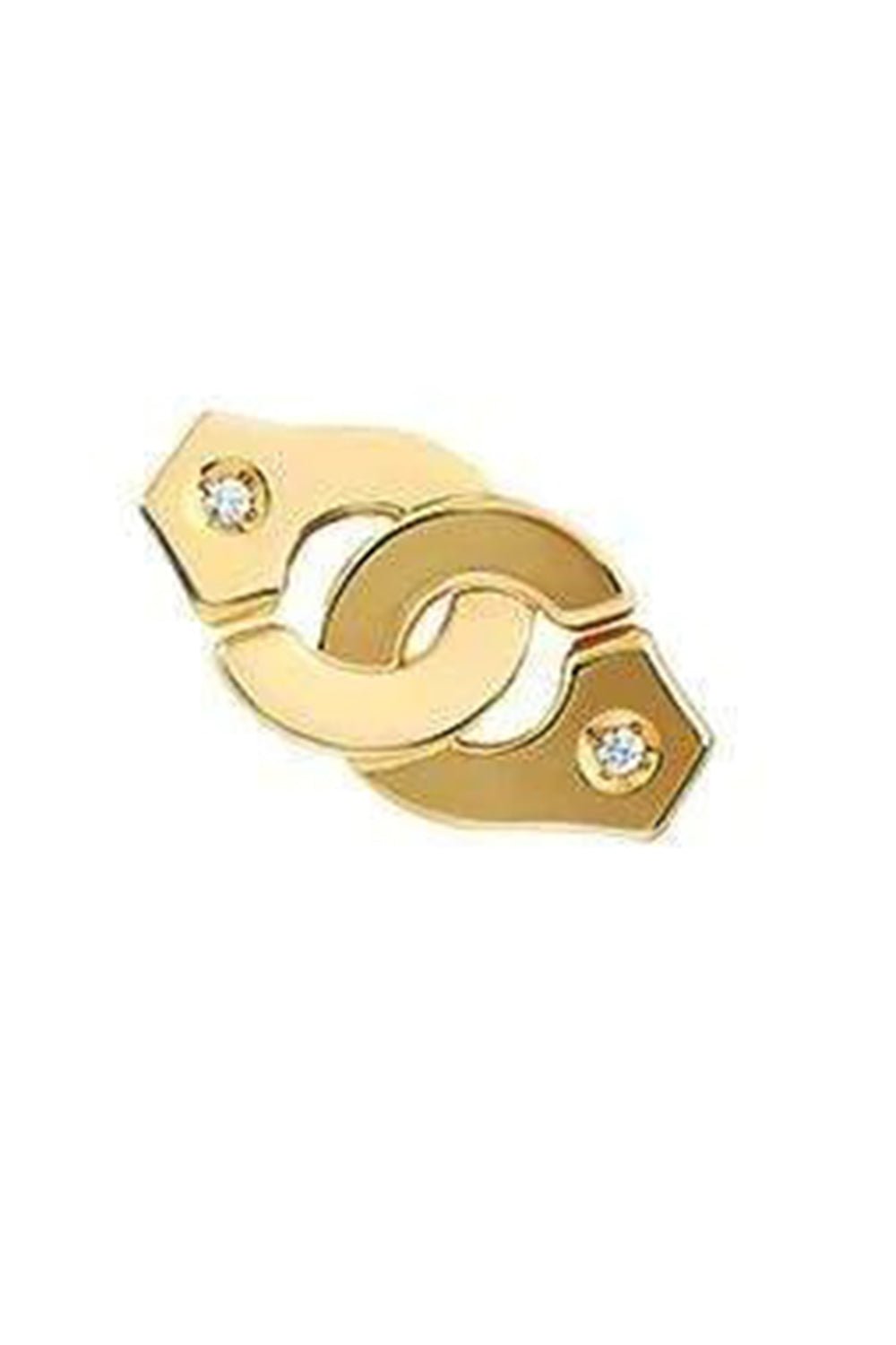 dinh van Mono earring Menottes R8 in yellow gold set with 2 diamonds. Rebellious spirit, symbol of union or attachment. The Maison dinh van's iconic motif is declined in a single earring to be worn alone or in accumulation.