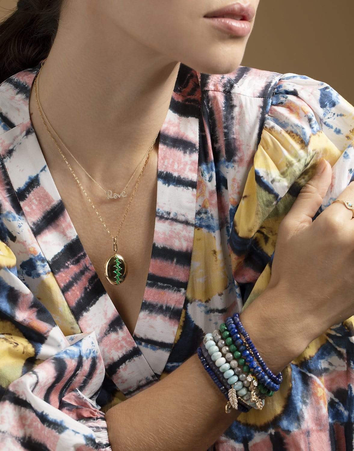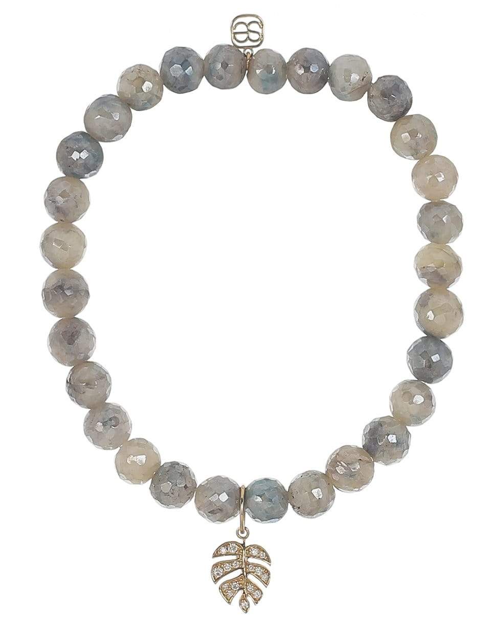 Sydney Evan monstera leaf blue and white corundum bead bracelet.
