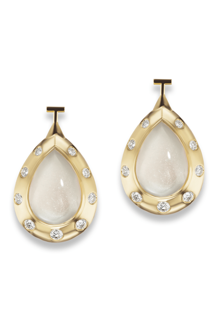 Gemella Jewels moonstone drops. Stella necklace sold separately.