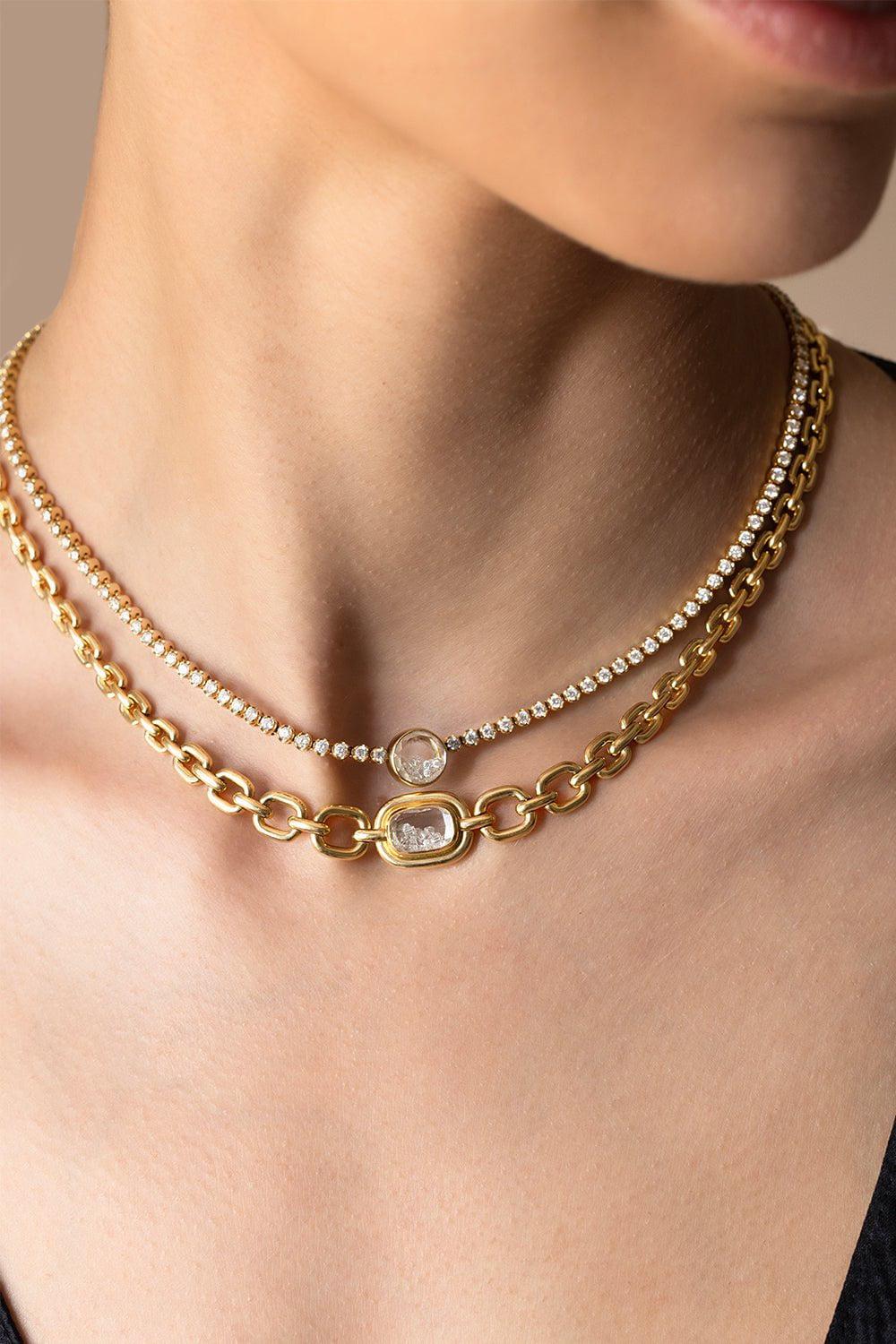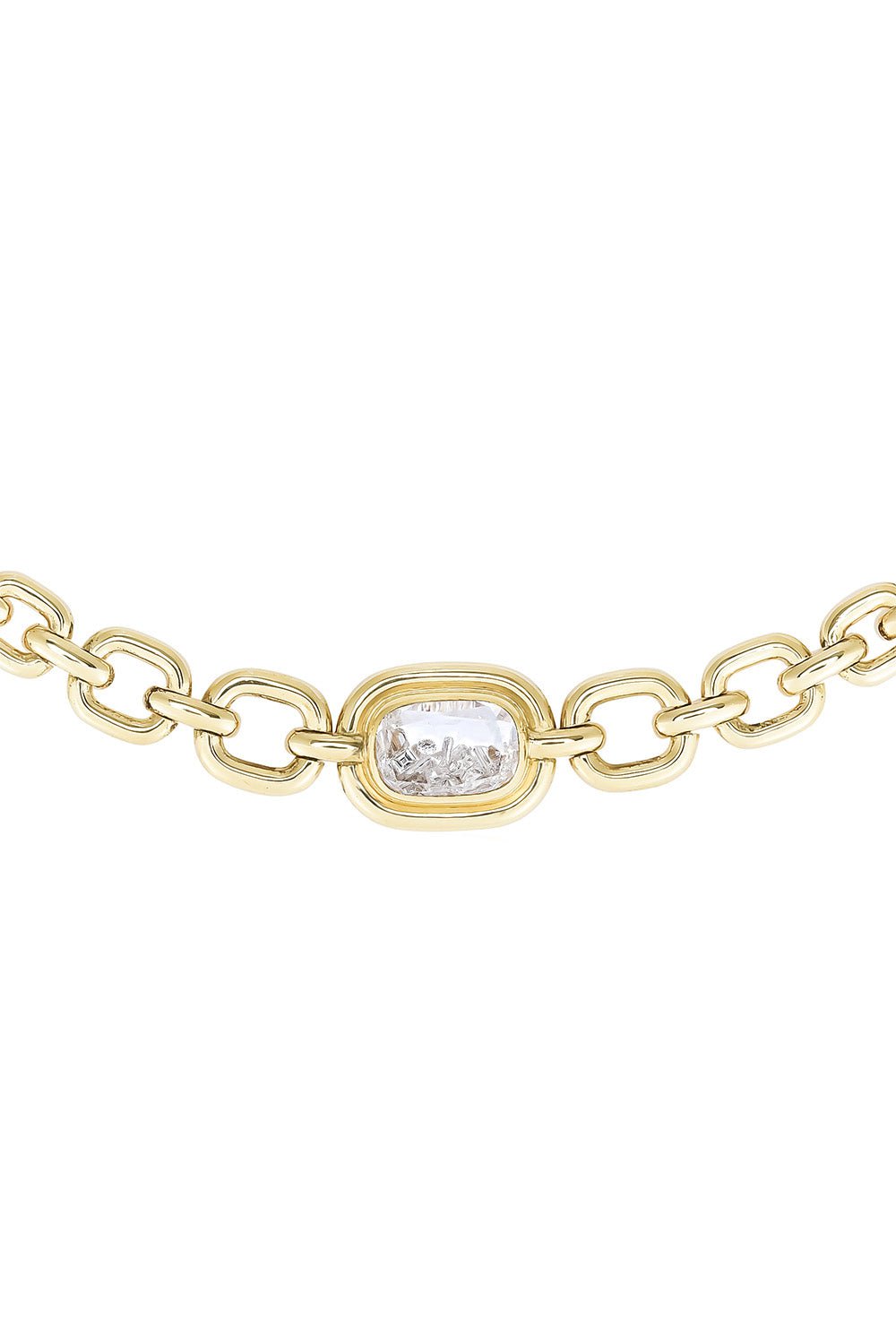 Moritz Glik white sapphire elo necklace in yellow gold.