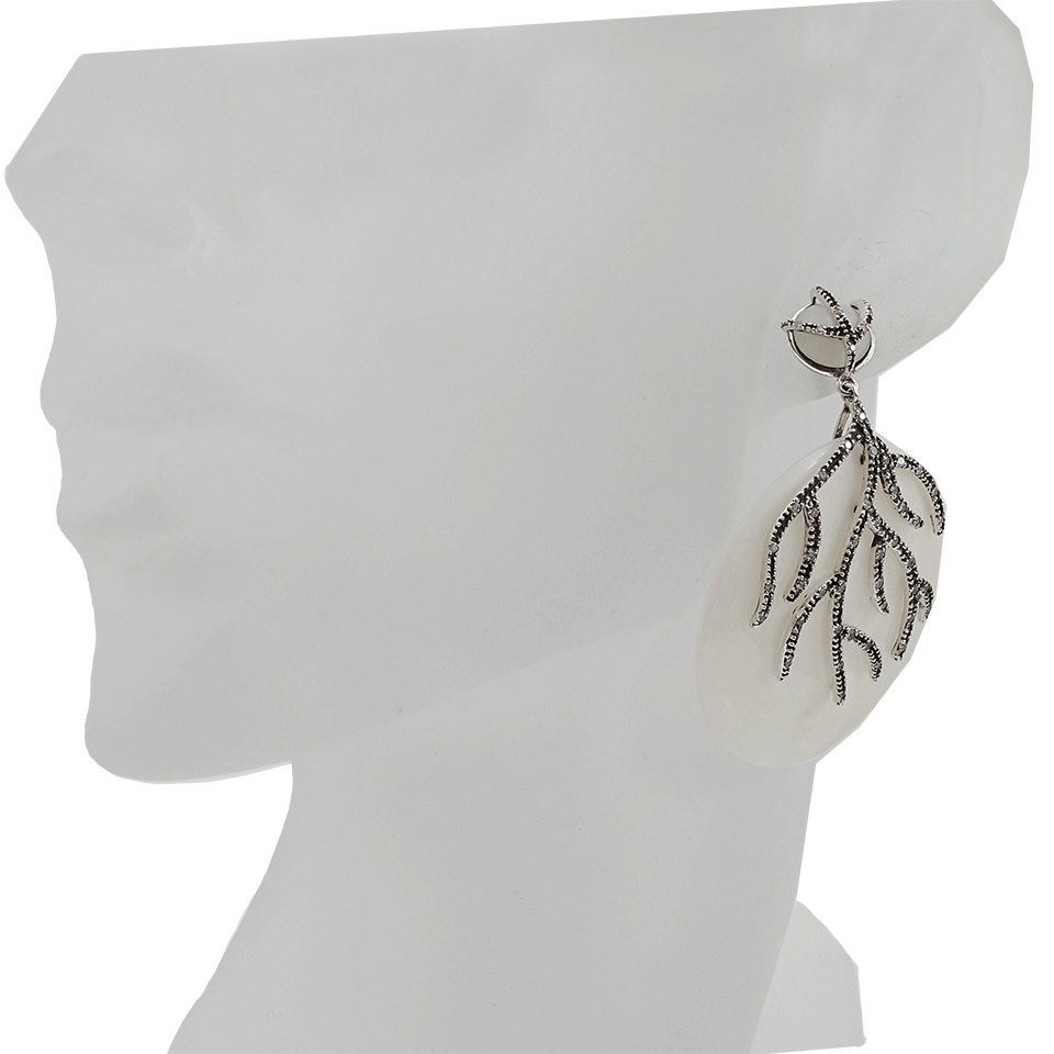 Let the roots of these mother of pearl resin twig earrings by Miriam Salat sink into your style for a naturally gorgeous accent. Post Earrings 1.75” x 1.75 Available in Mother of Pearl