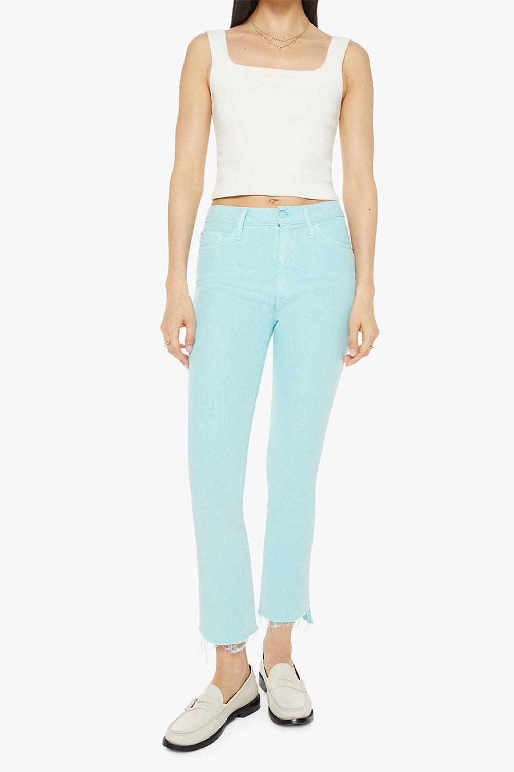 Mother the insider crop step fray jean in chalk it up.