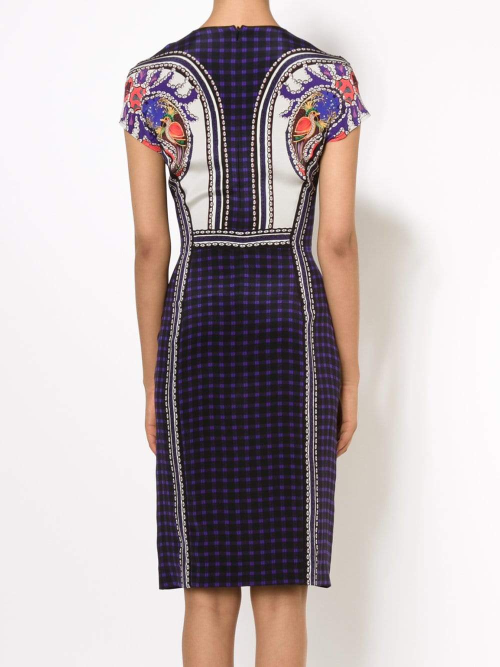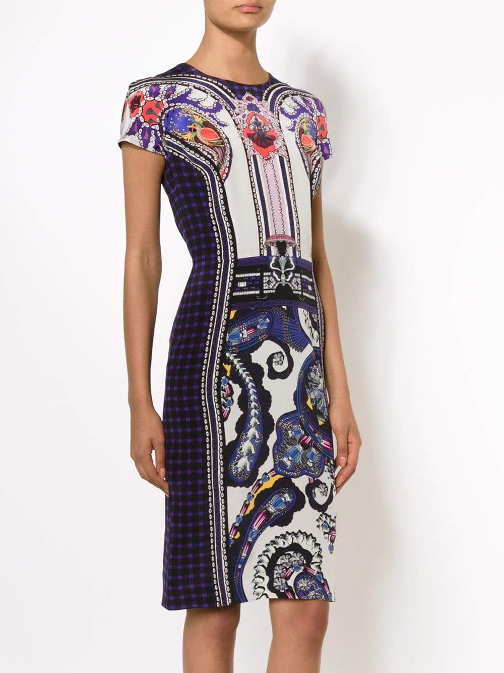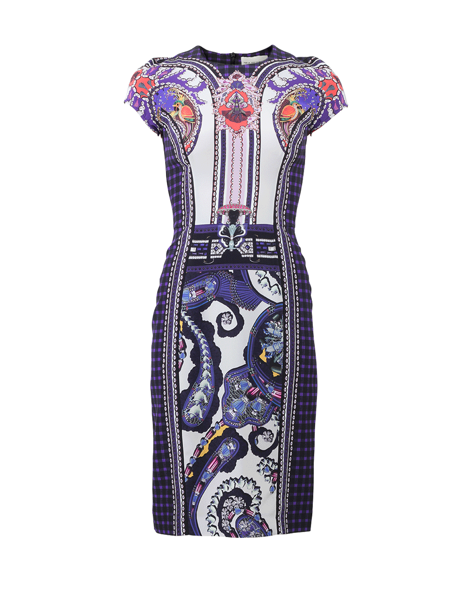 Slim-Fitting Silhouette With Midi-Length Cut And All-Over Plaid And Multi-Print Design