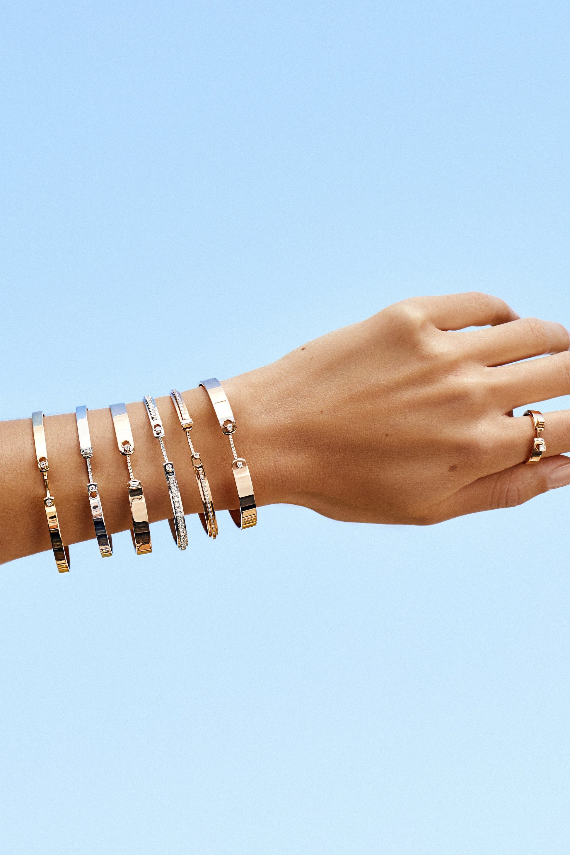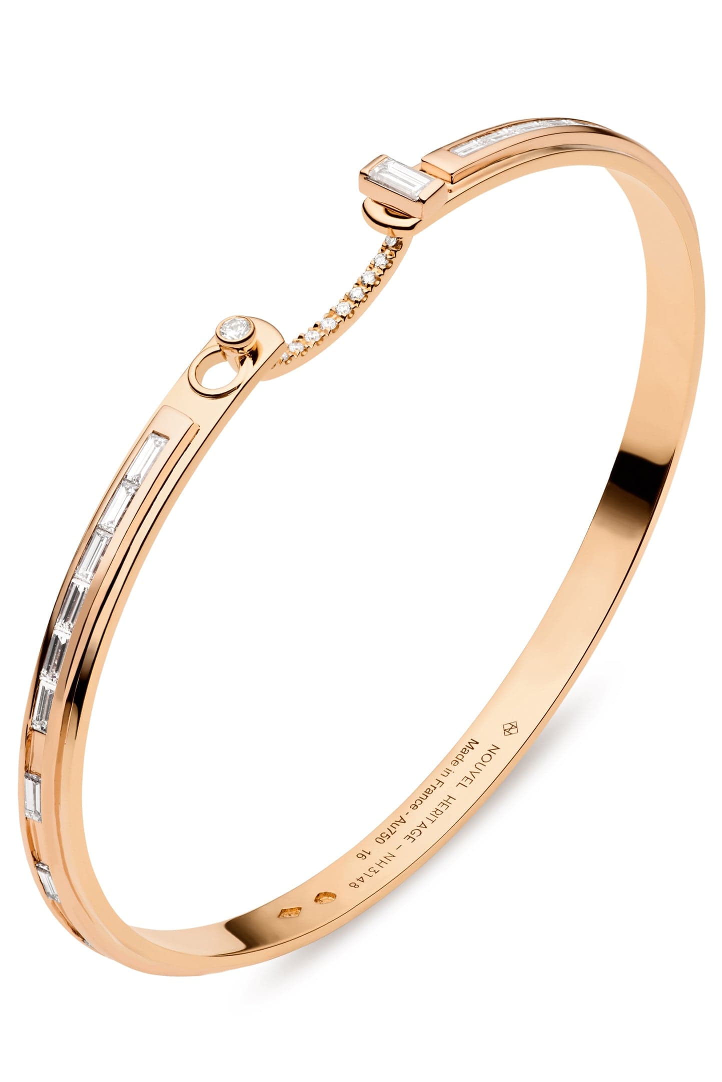 Nouvel Heritage my best friends wedding mood bangle. This gold bangle captures the fun and elegant bridal atmosphere. The baguettes paved on this bracelet make it a unique luxury statement jewelry. Made in 18k gold, this bangle, like all Nouvel Heritage's jewelry, is handmade with precision in our workshop in Paris.