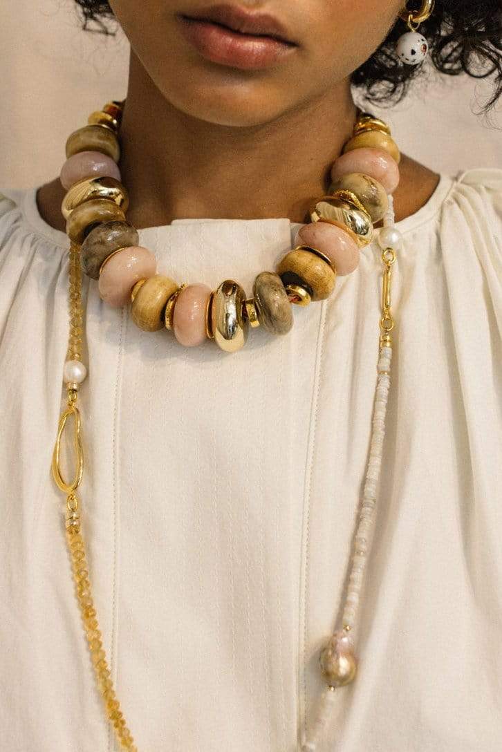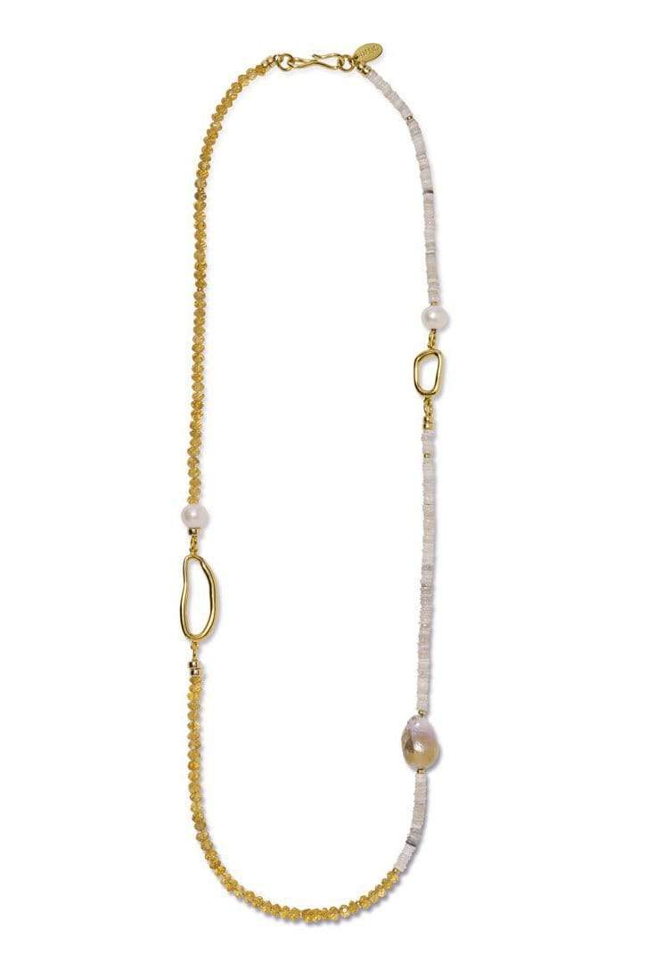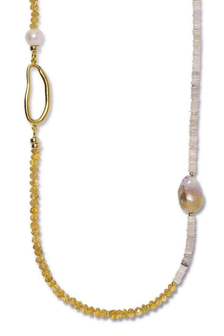 Lizzie Fortunato mystic necklace. Sail into the mystic on a wave of chic in this long single-strand necklace of Australian opal and citrine beads, with freshwater pearl and gold-plated brass abstract accents.