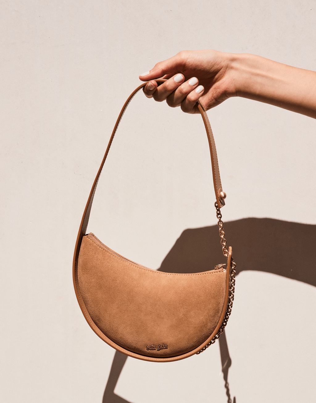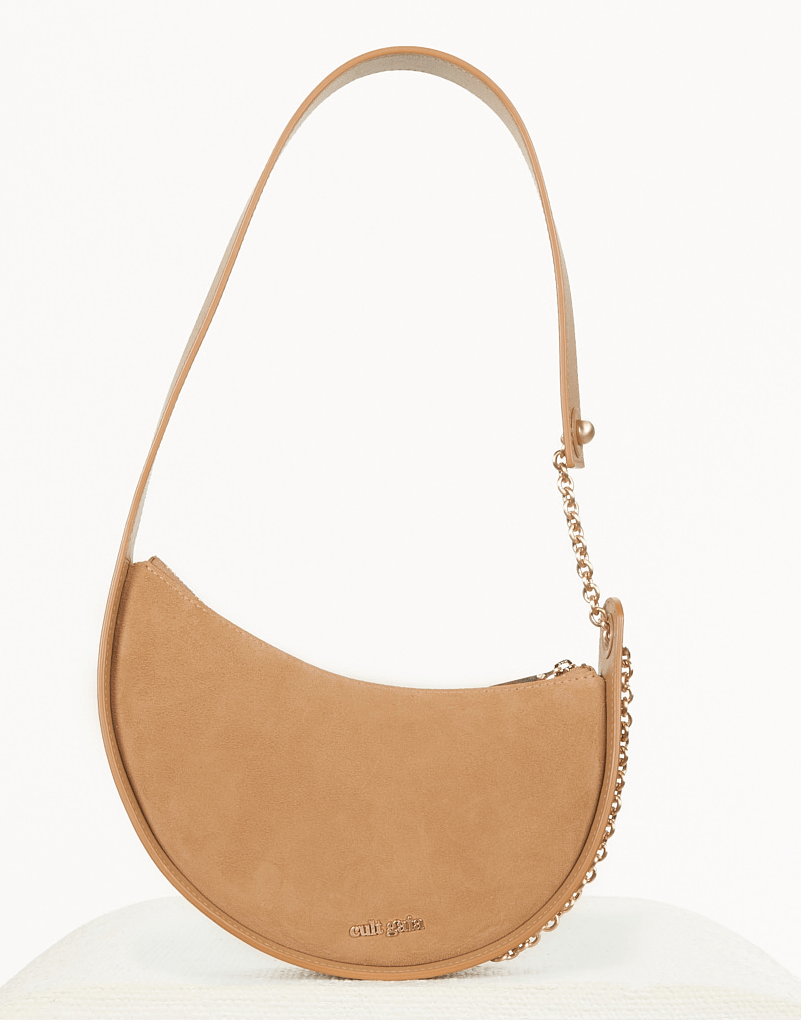 Cult Gaia nadia half-moon shaped shoulder bag in camel.