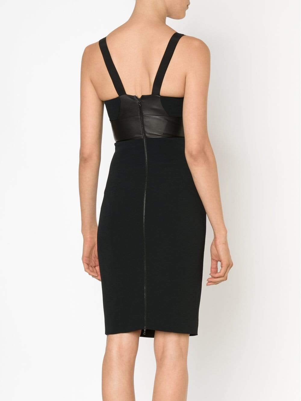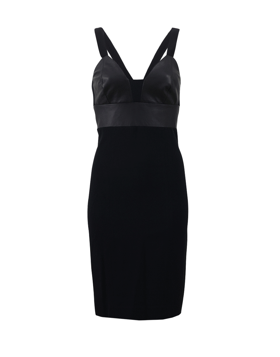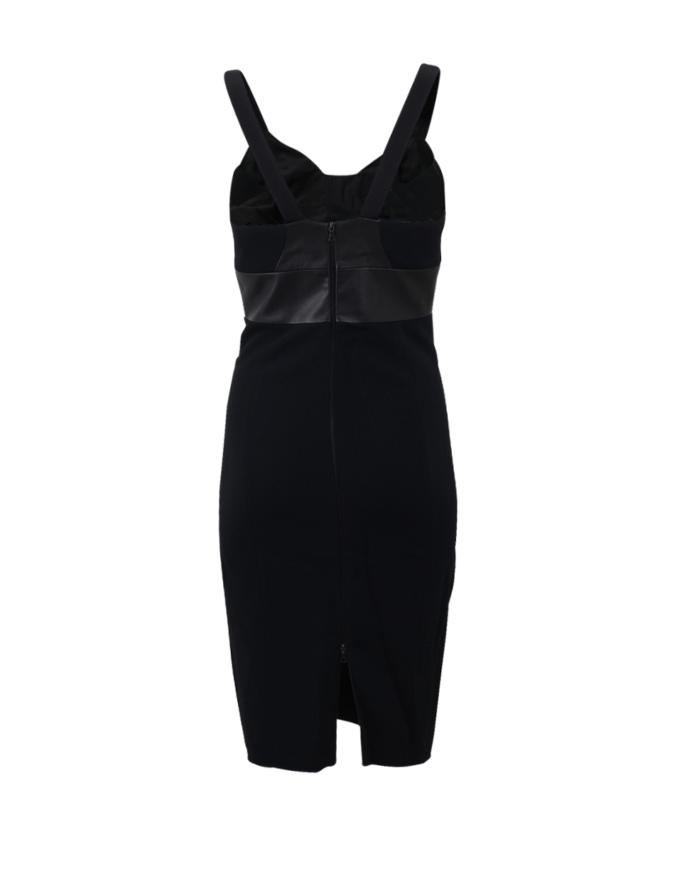 Sweetheart Neckline With Leather Paneling And Detail And Knee-Length Cut