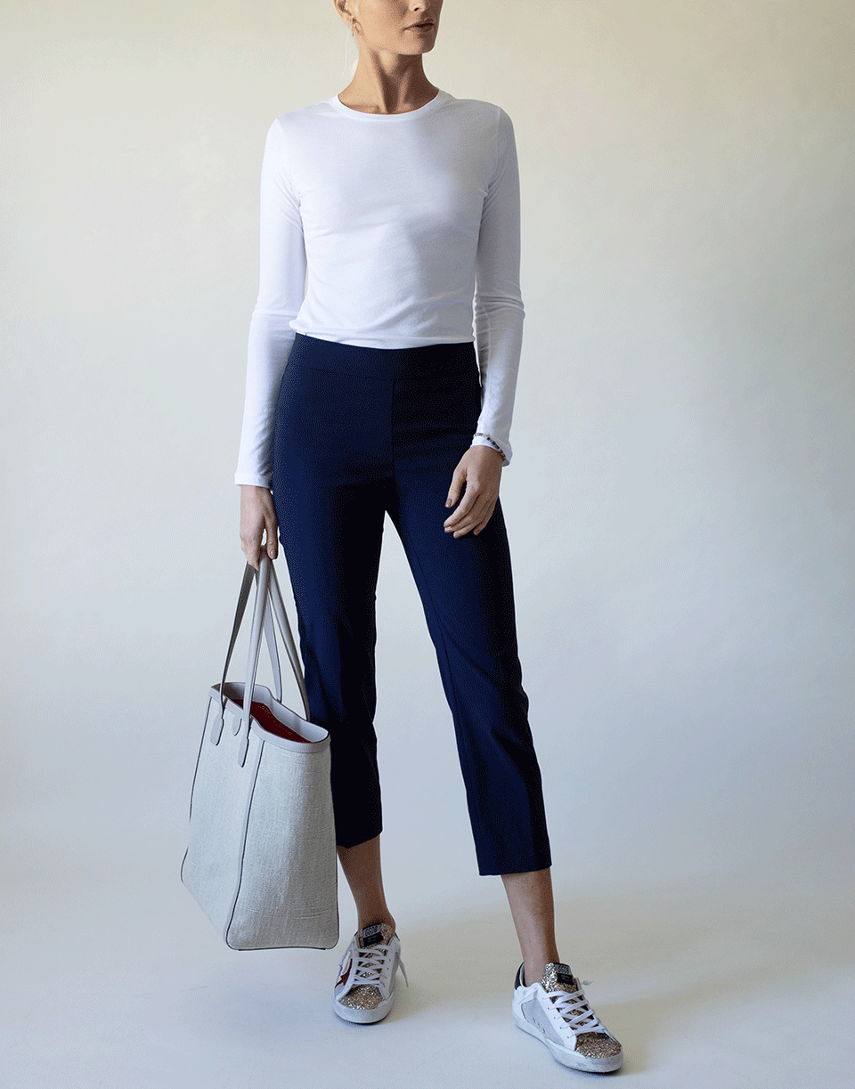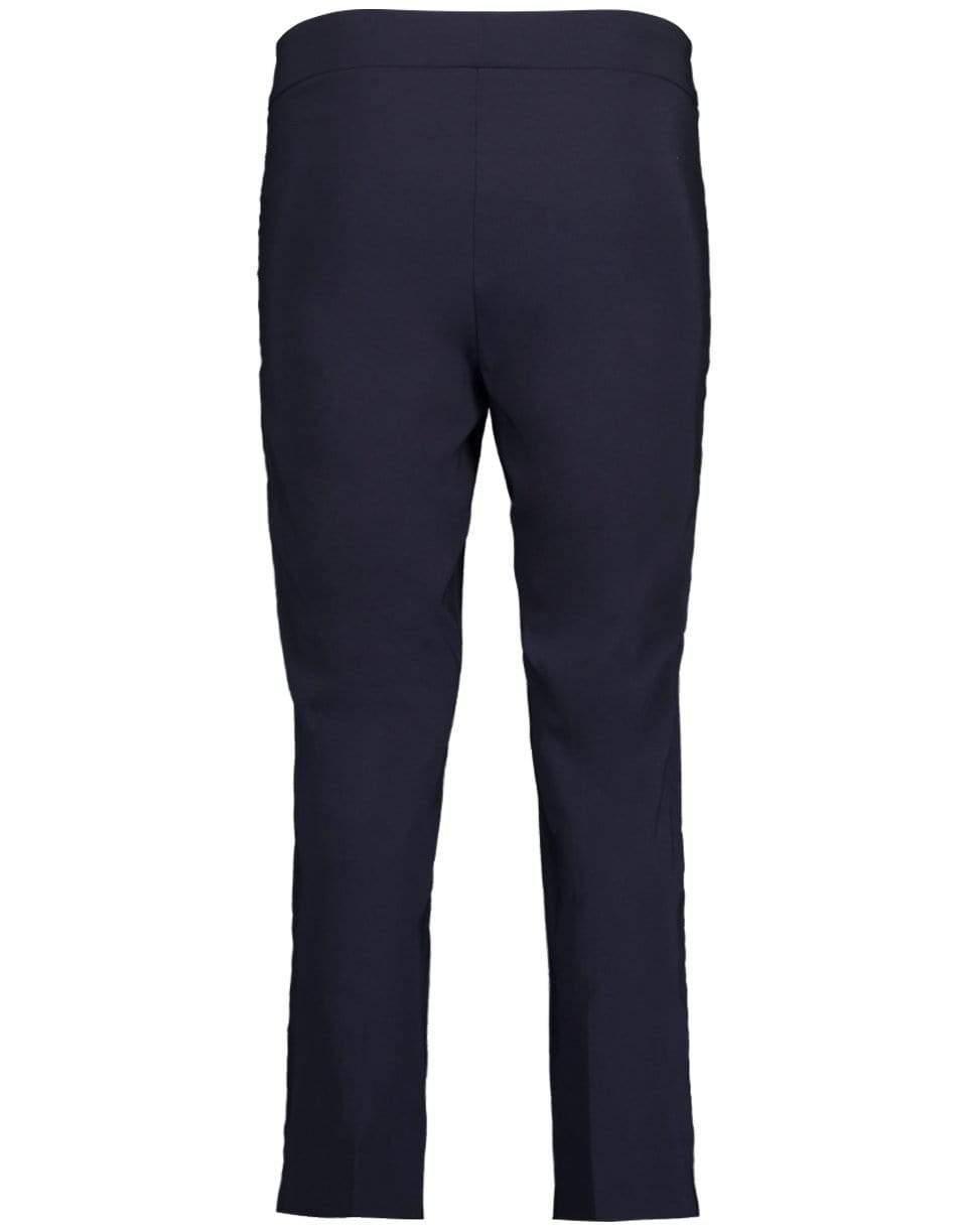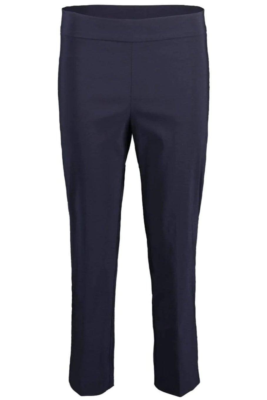 Avenue Montaigne navy Brigitte pull-on pant with a straight leg and side slit.