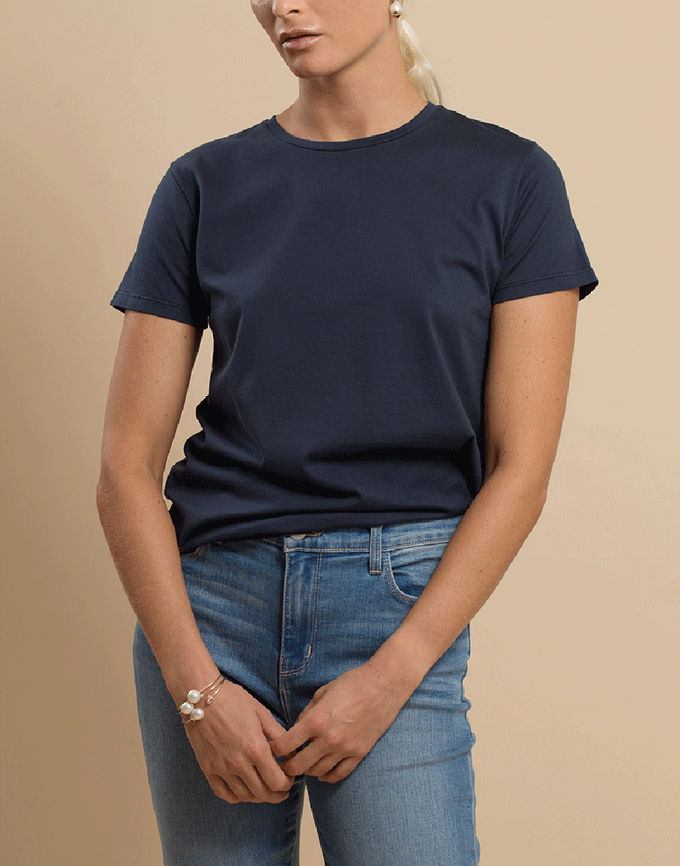 Navy non-stretch cotton t-shirt from Aspesi with a crewneck, short sleeves, and a classic fit.