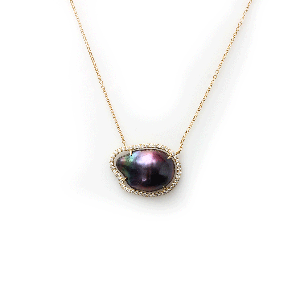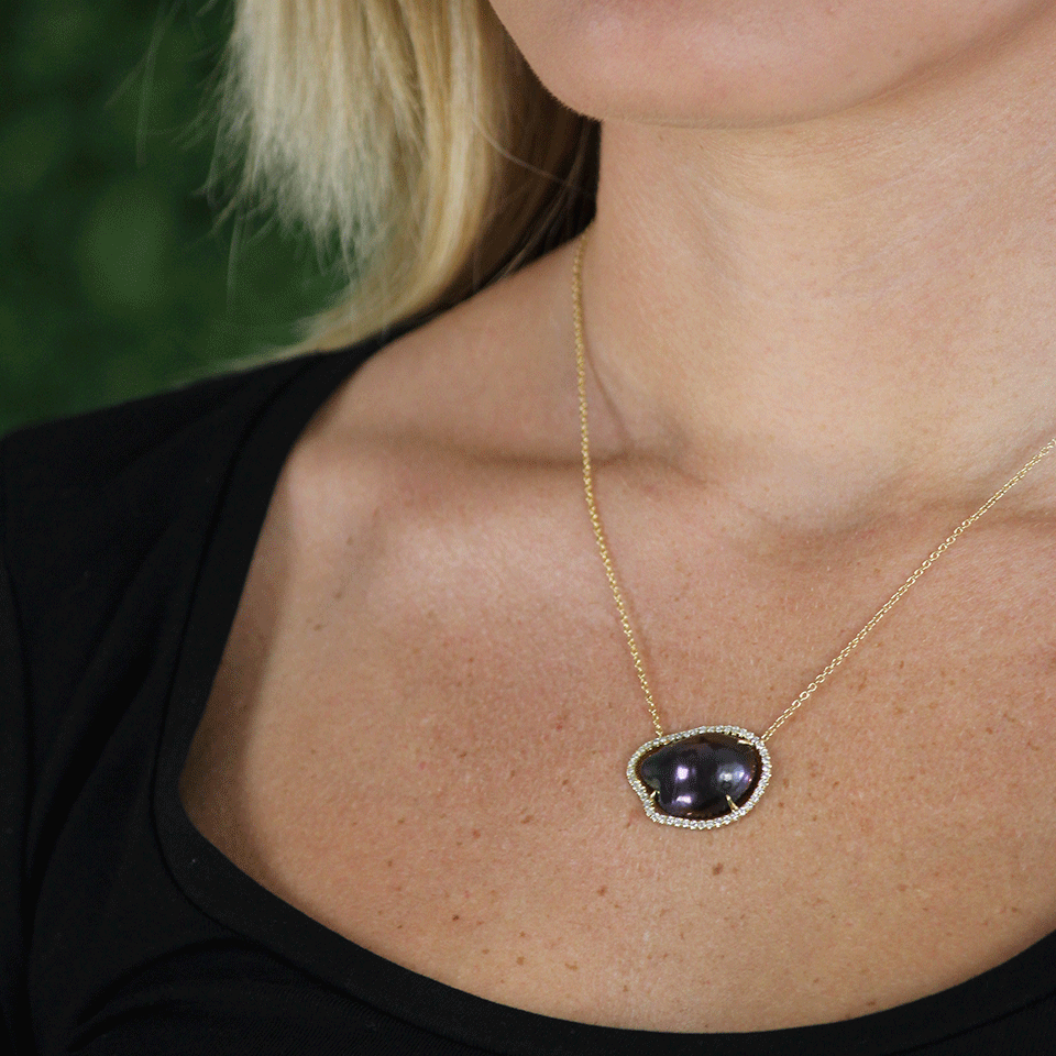 Navy Fresh Water Baroque Pearl Slice Necklace With Diamond Pave Frame From Jordan Alexander