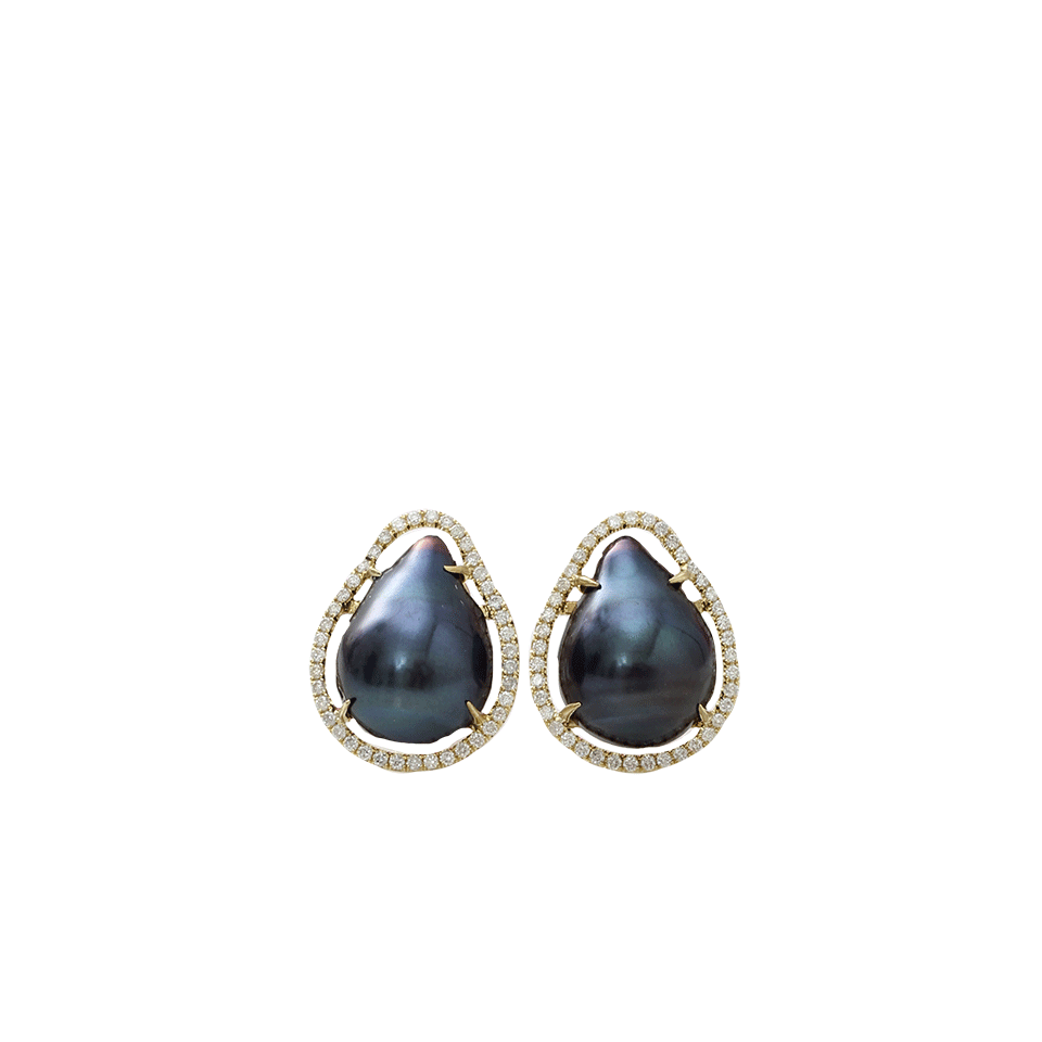 Navy Fresh Water Baroque Pearl Slice Earrings With Pace Diamond Frame From Jordan Alexander