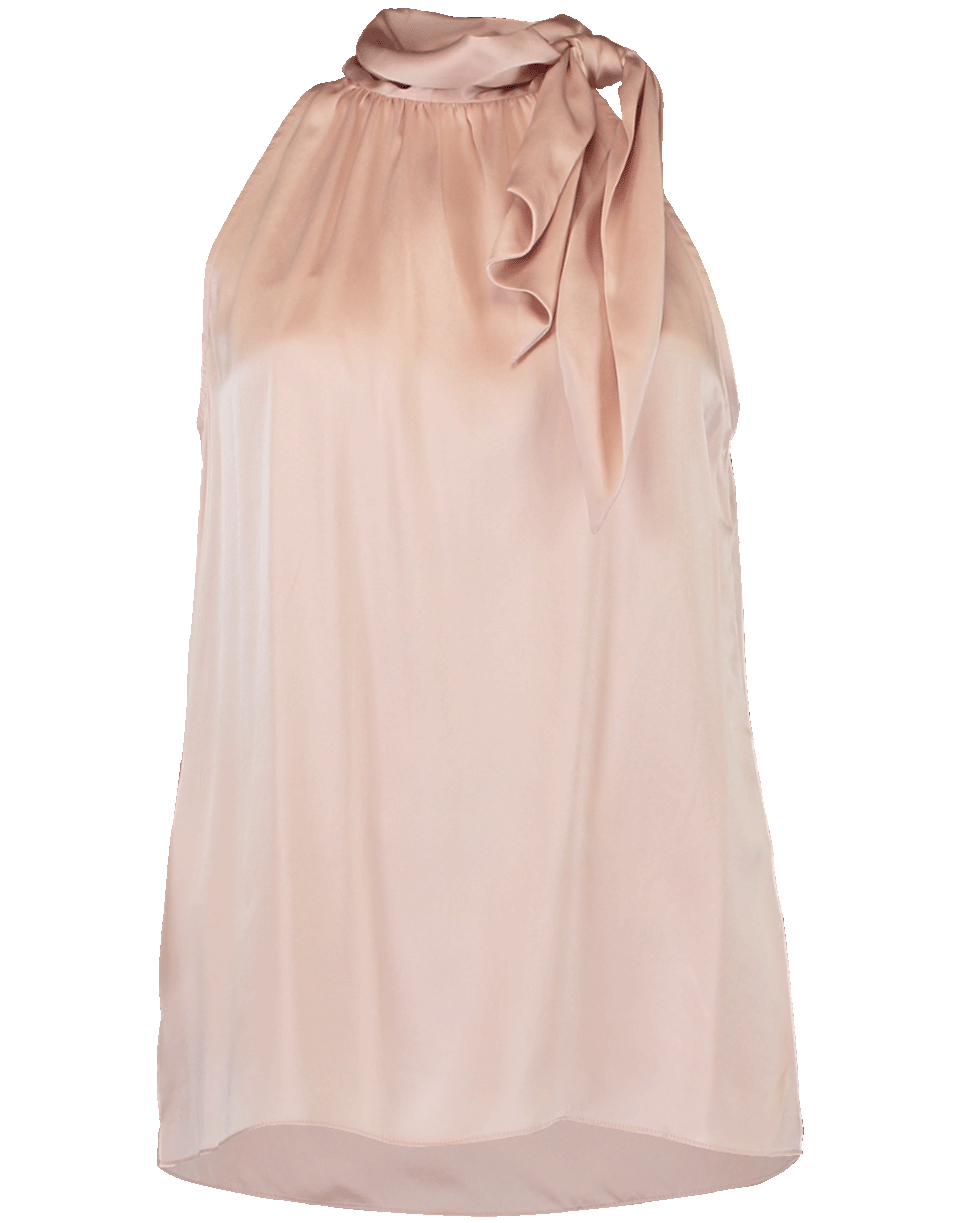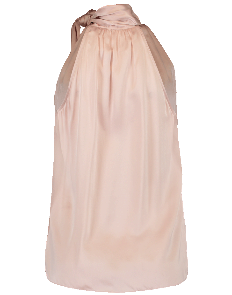 Pink necktie tank by Zimmermann. This silk sleeveless top features a loose silhouette and a gathered neckline with an affixed self-tie ribbon.