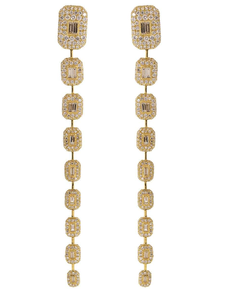 Shay nine drop pave and baguette diamond earrings set in 18k yellow gold.