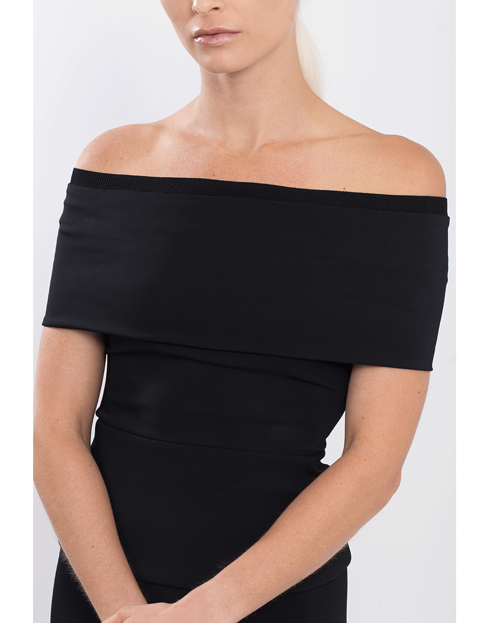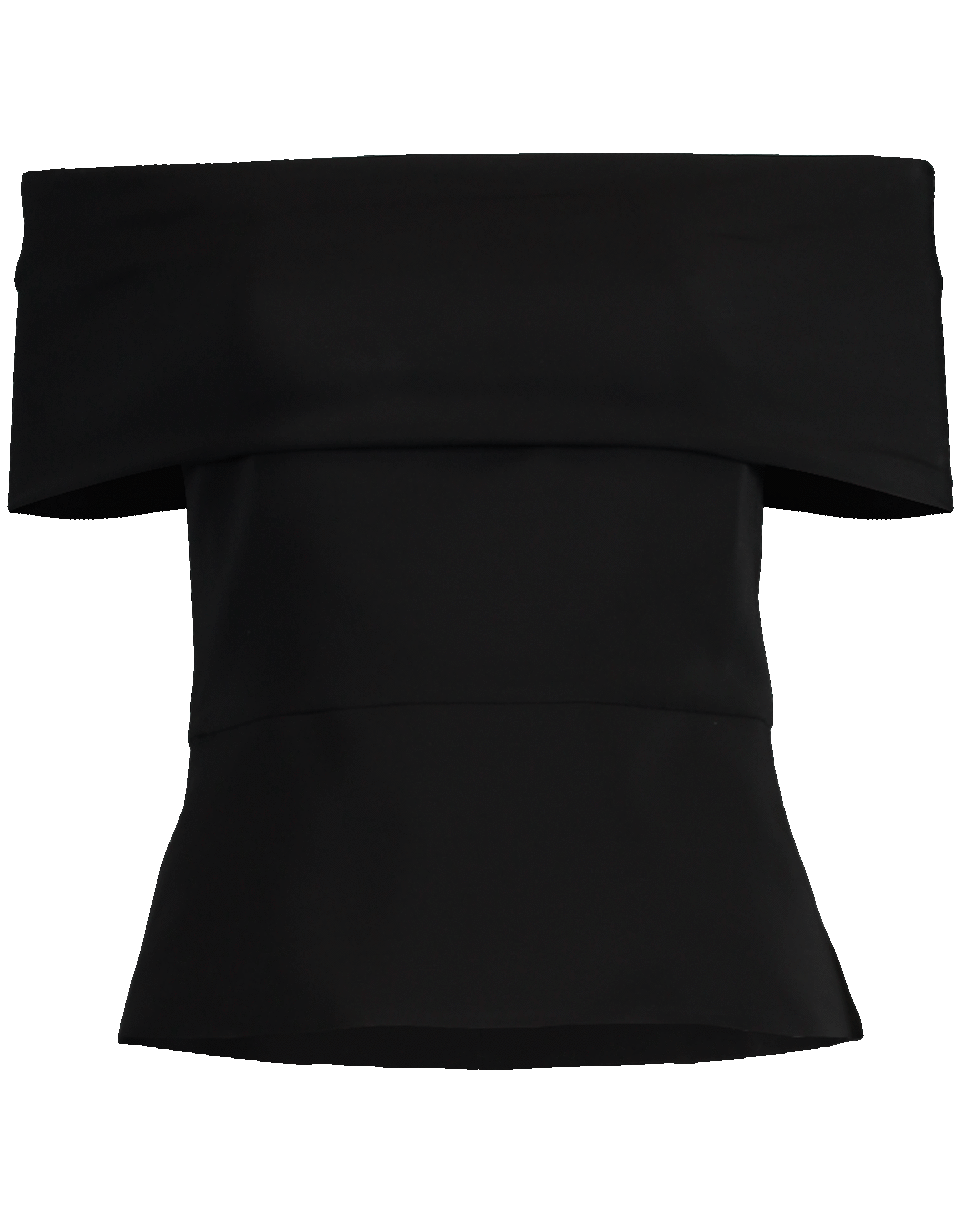 This off-the-shoulder top by Cushnie features a rib knit detail at top, cropped length, concealed zip closure at back, fitted silhouette, peplum hemline and a folded off-the-shoulder neckline.