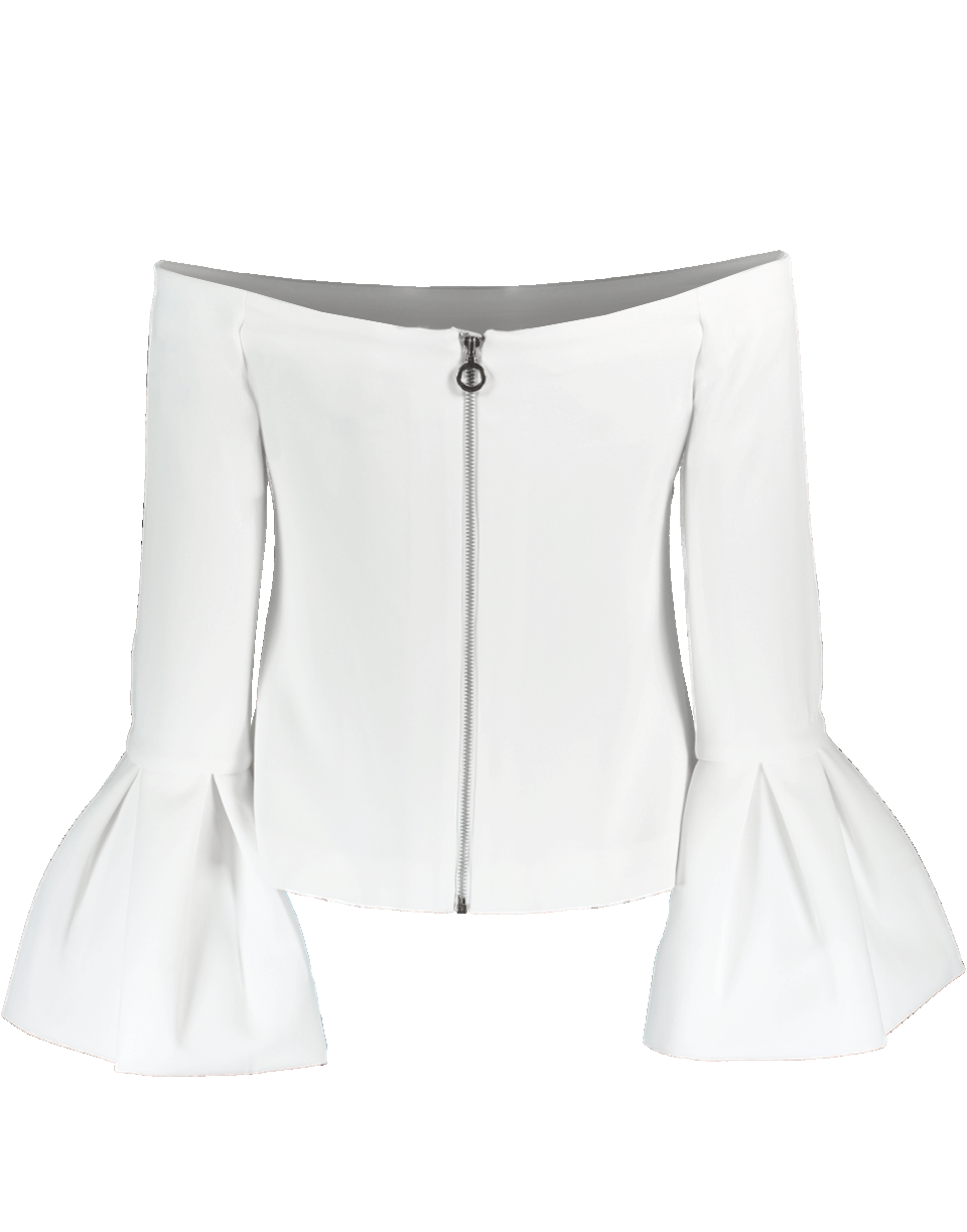 Off Shoulder Neckline With Back Zip Closure And Long Sleeves
