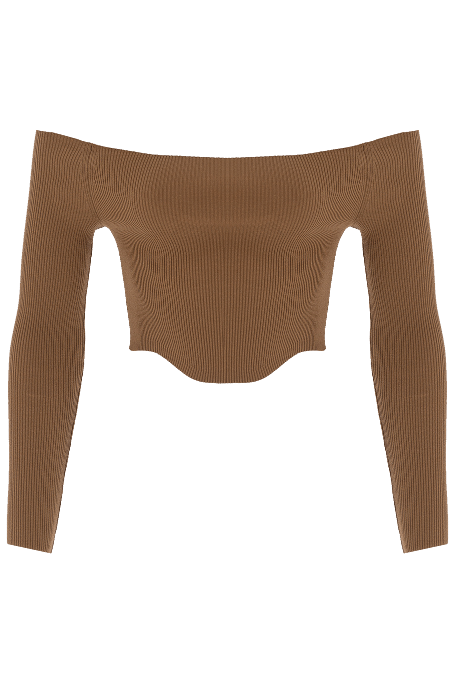 Zeynep Arcay off the shoulder knit crop top in camel.