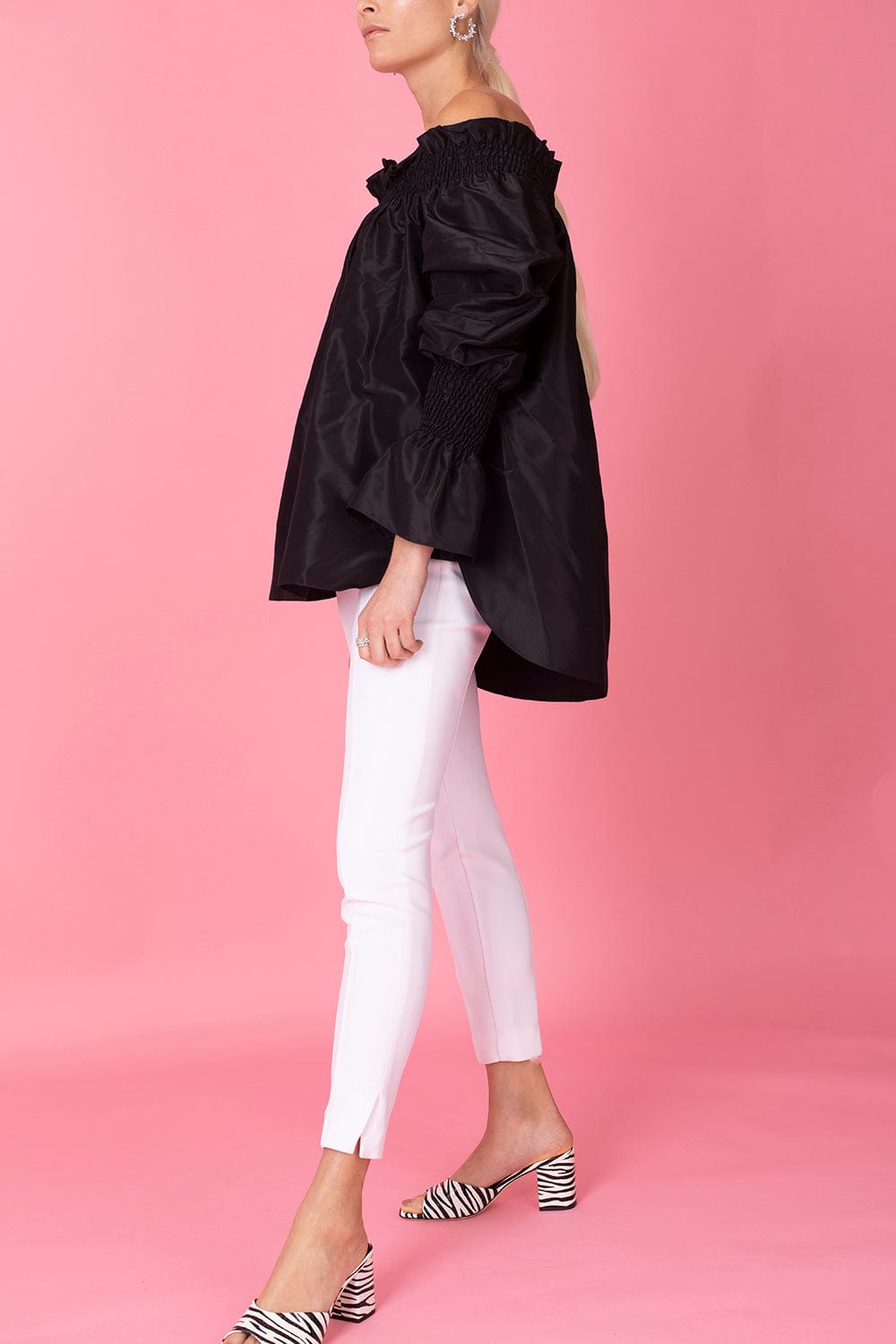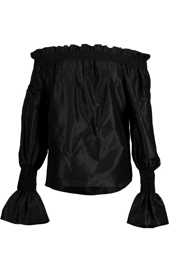Adam Lippes off the shoulder long sleeve top in black.