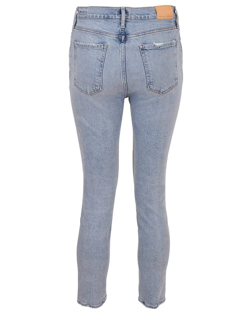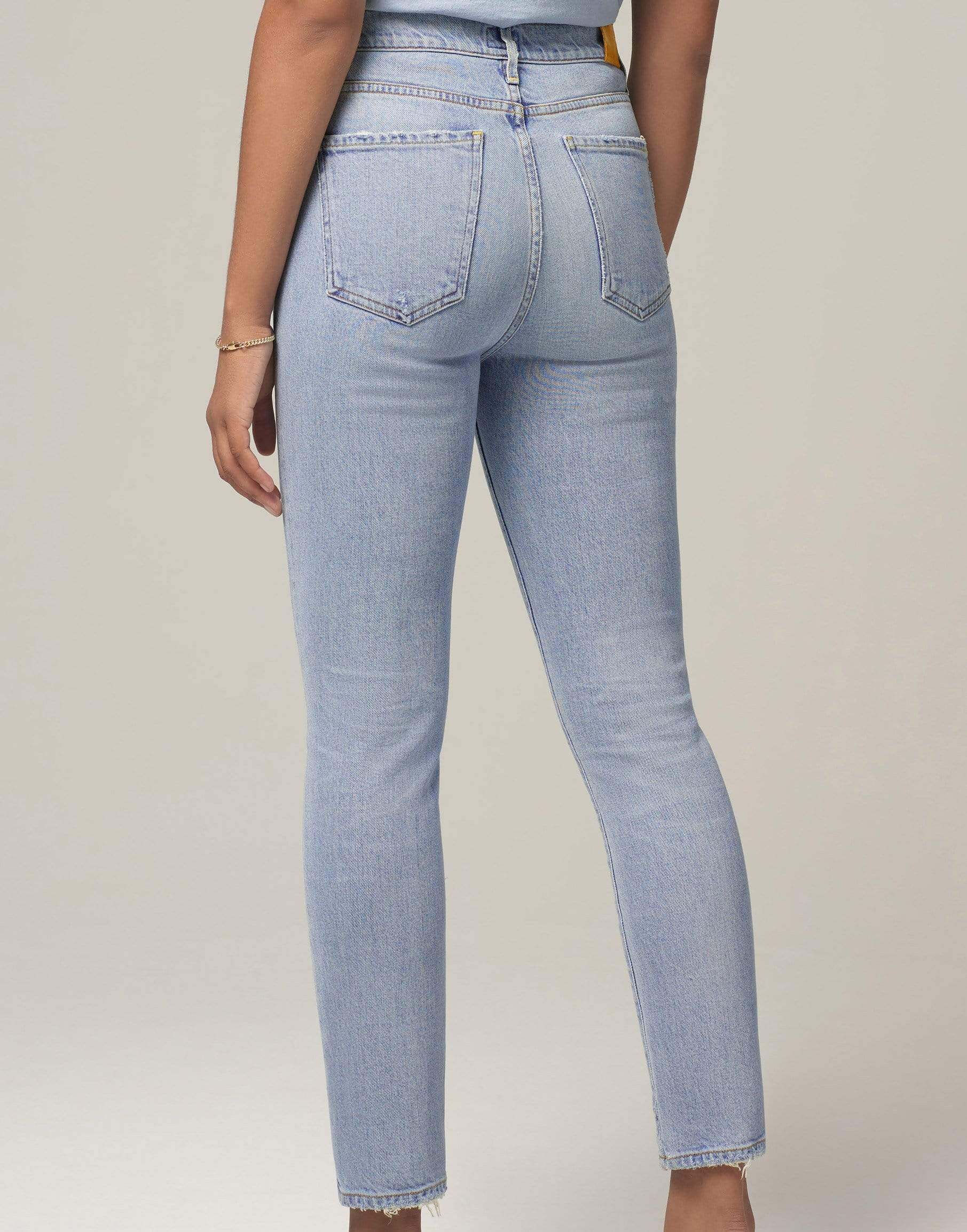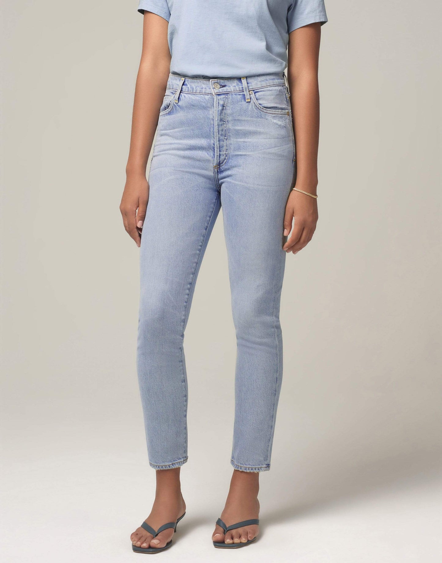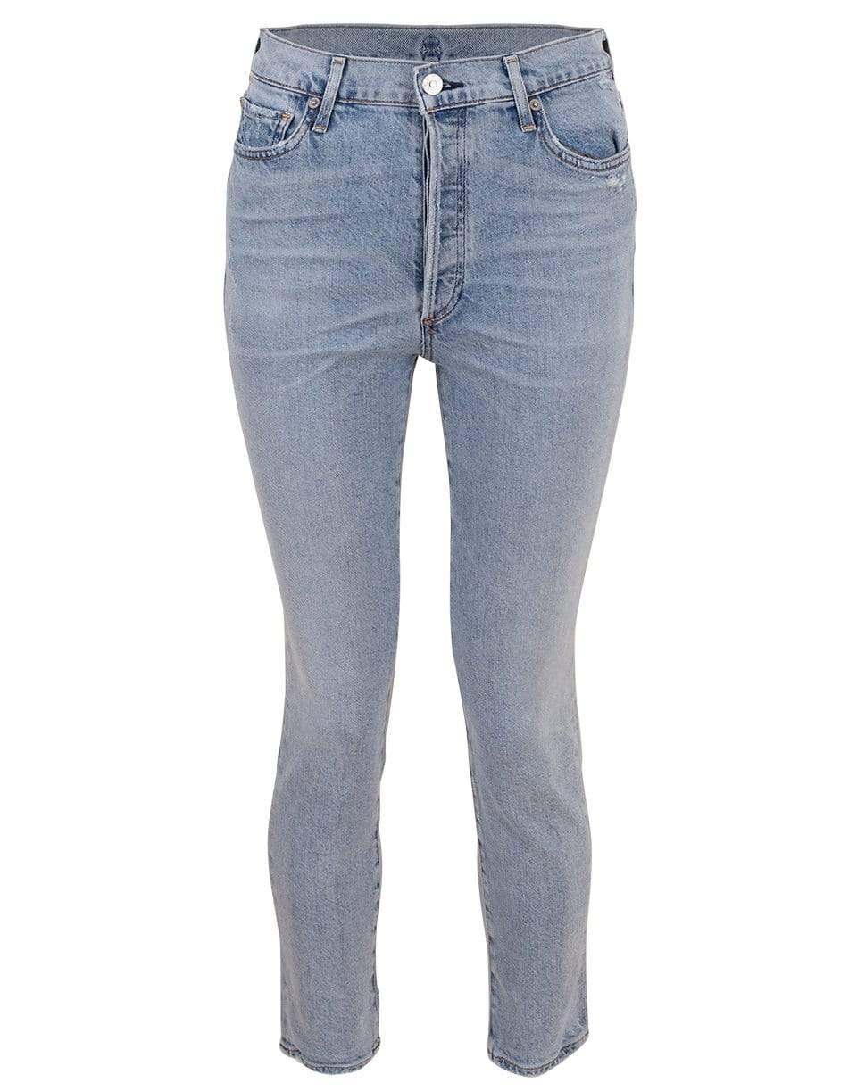 Citizens of Humanity Olivia high rise ankle jean in vintage indigo with a sleek slim-leg, button fastening, five pocket style, and logo-engraved silver-tone hardware. This pair is slightly cropped made to hit right at the ankle.