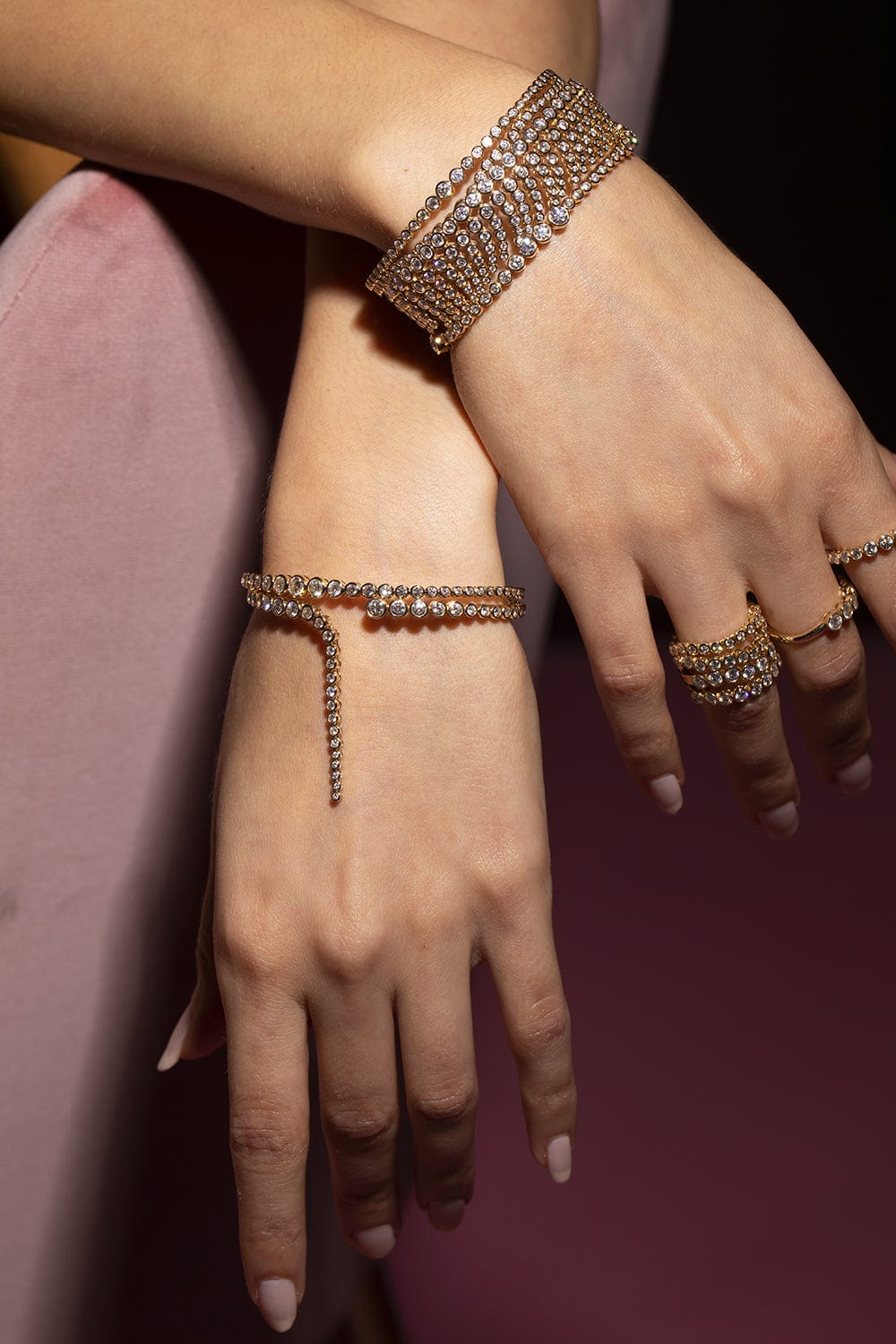 Ondyn grand rainsun tennis bracelet in yellow gold.