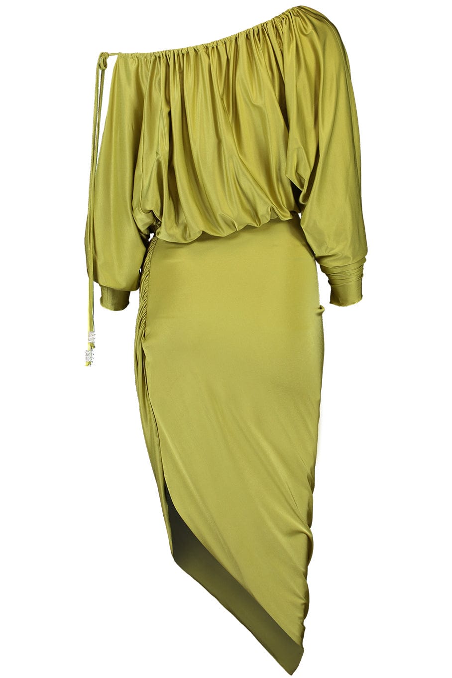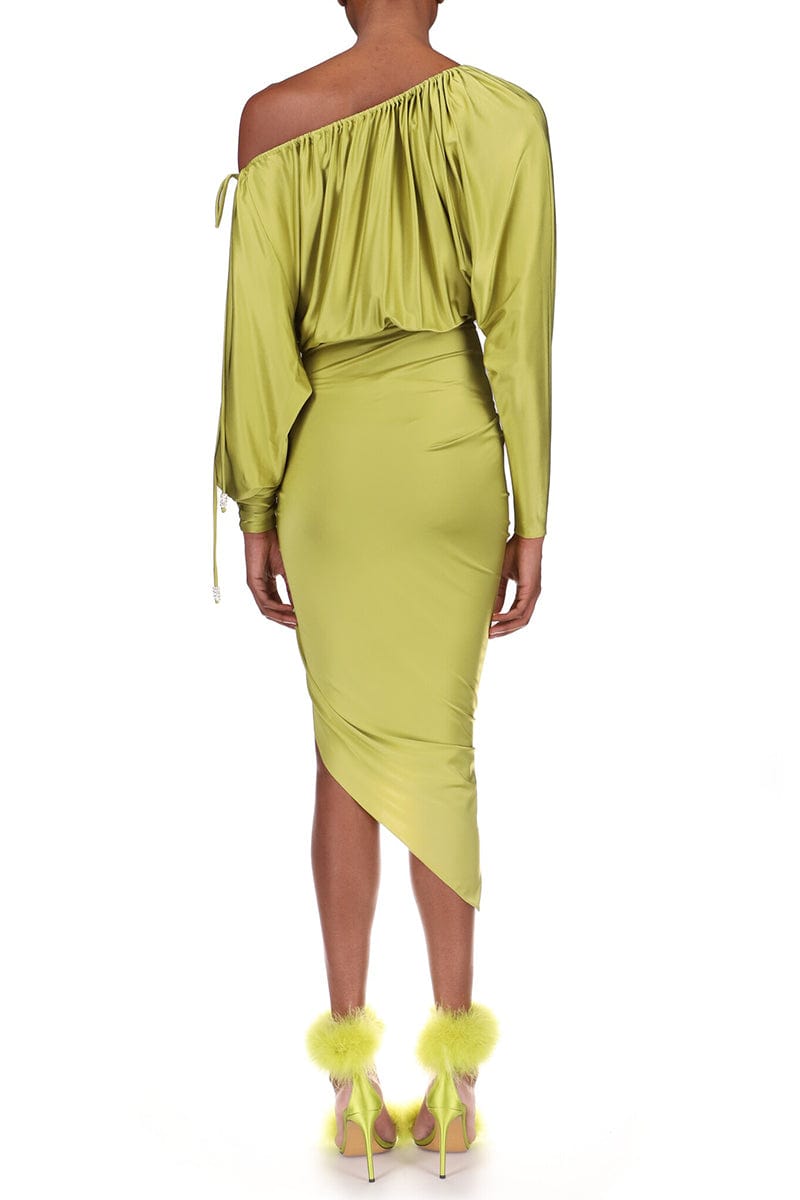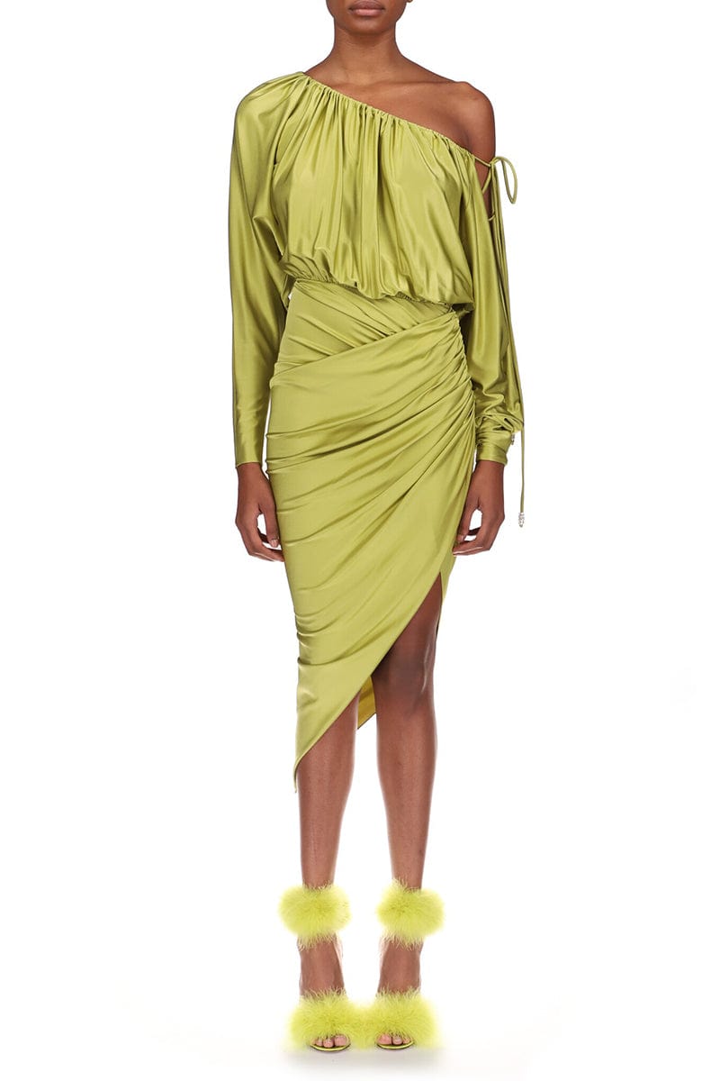 Alexandre Vauthier one shoulder dress in lemon grass.