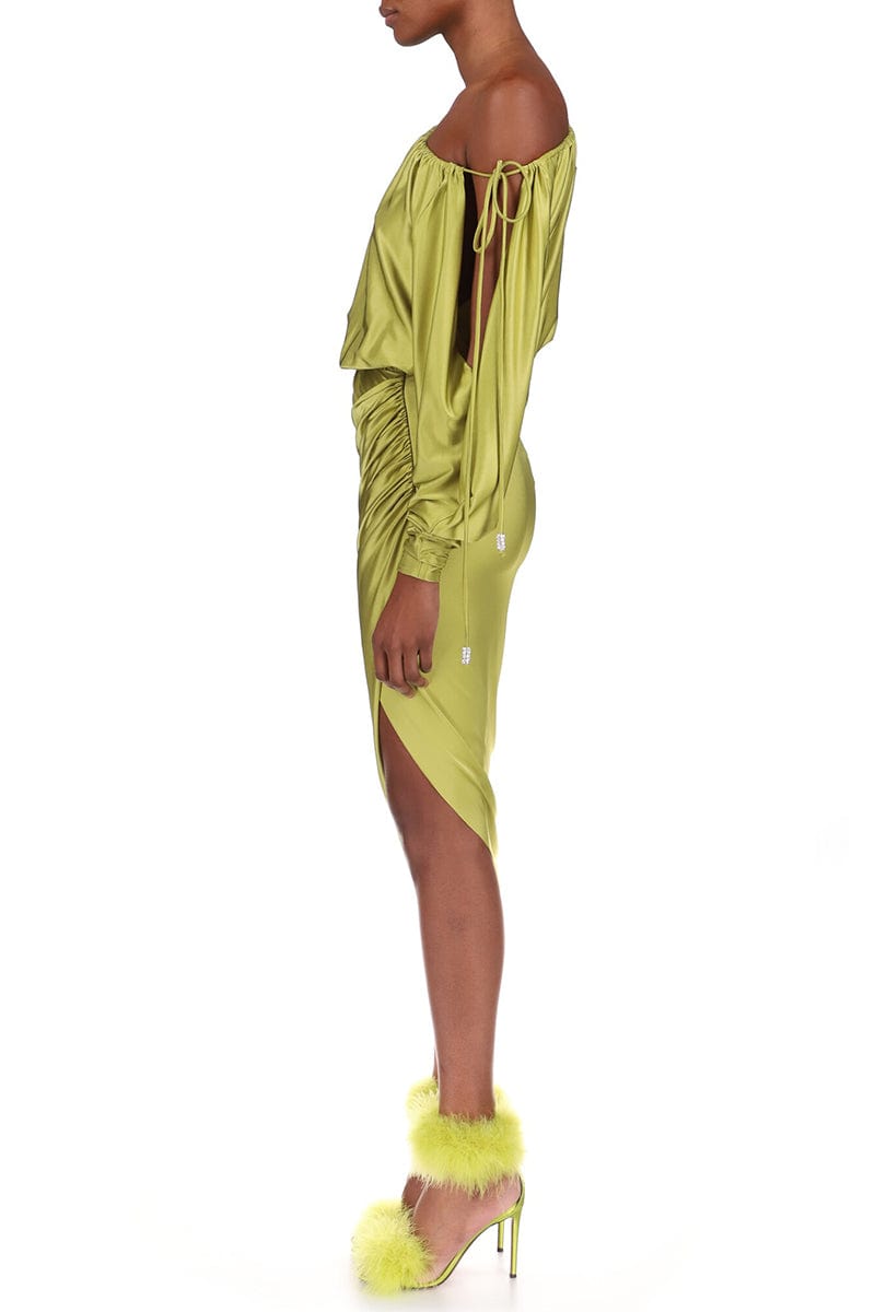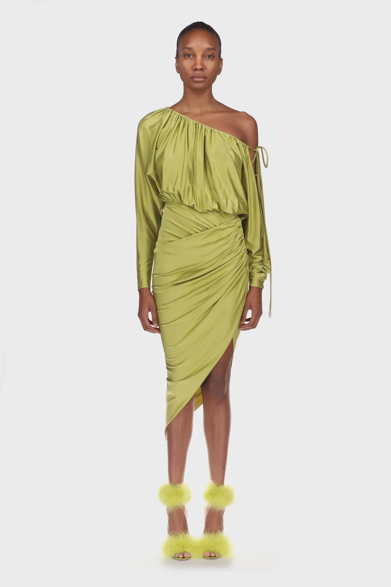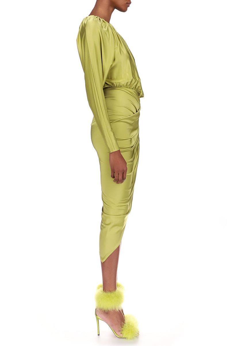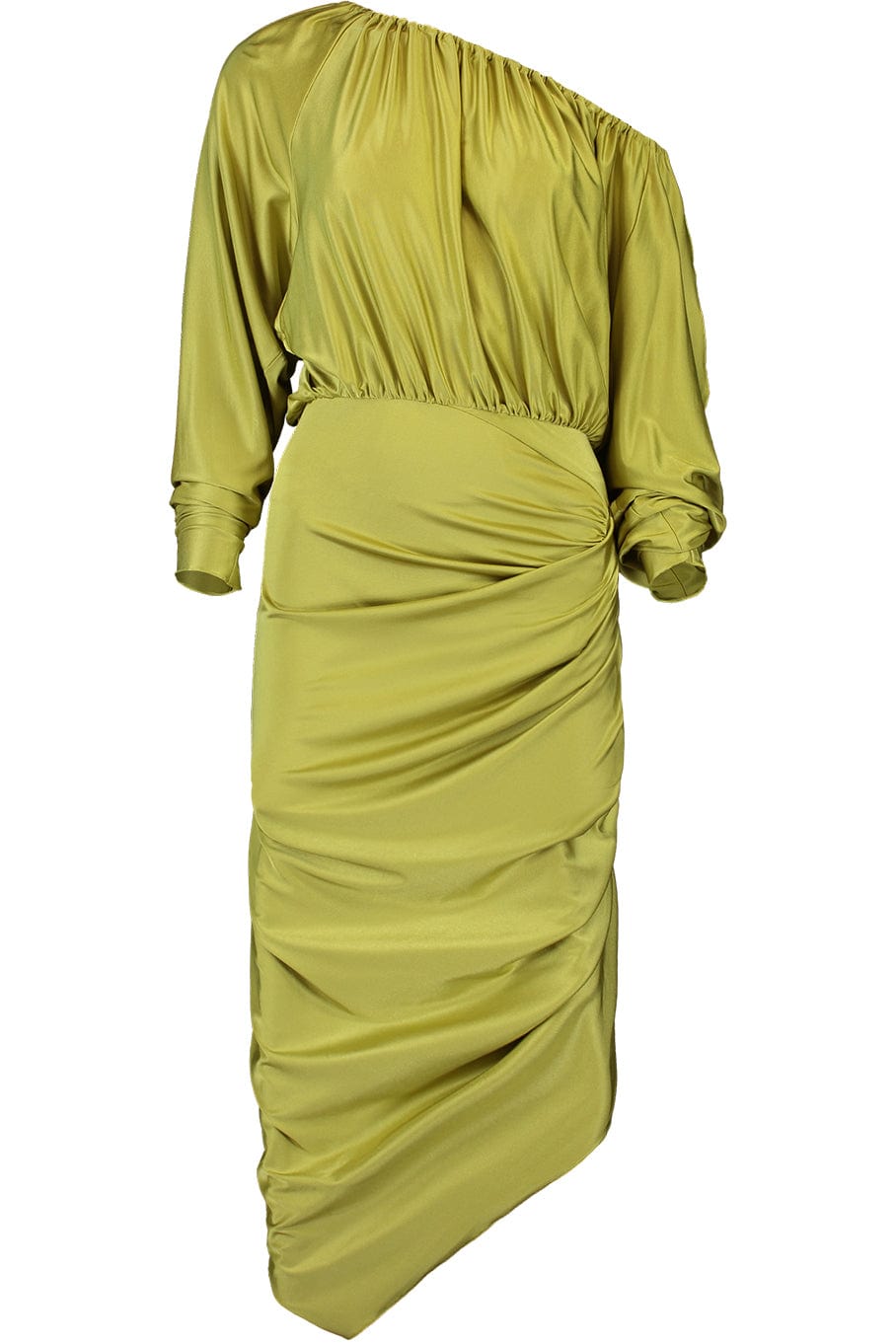 Alexandre Vauthier one shoulder dress in lemon grass.