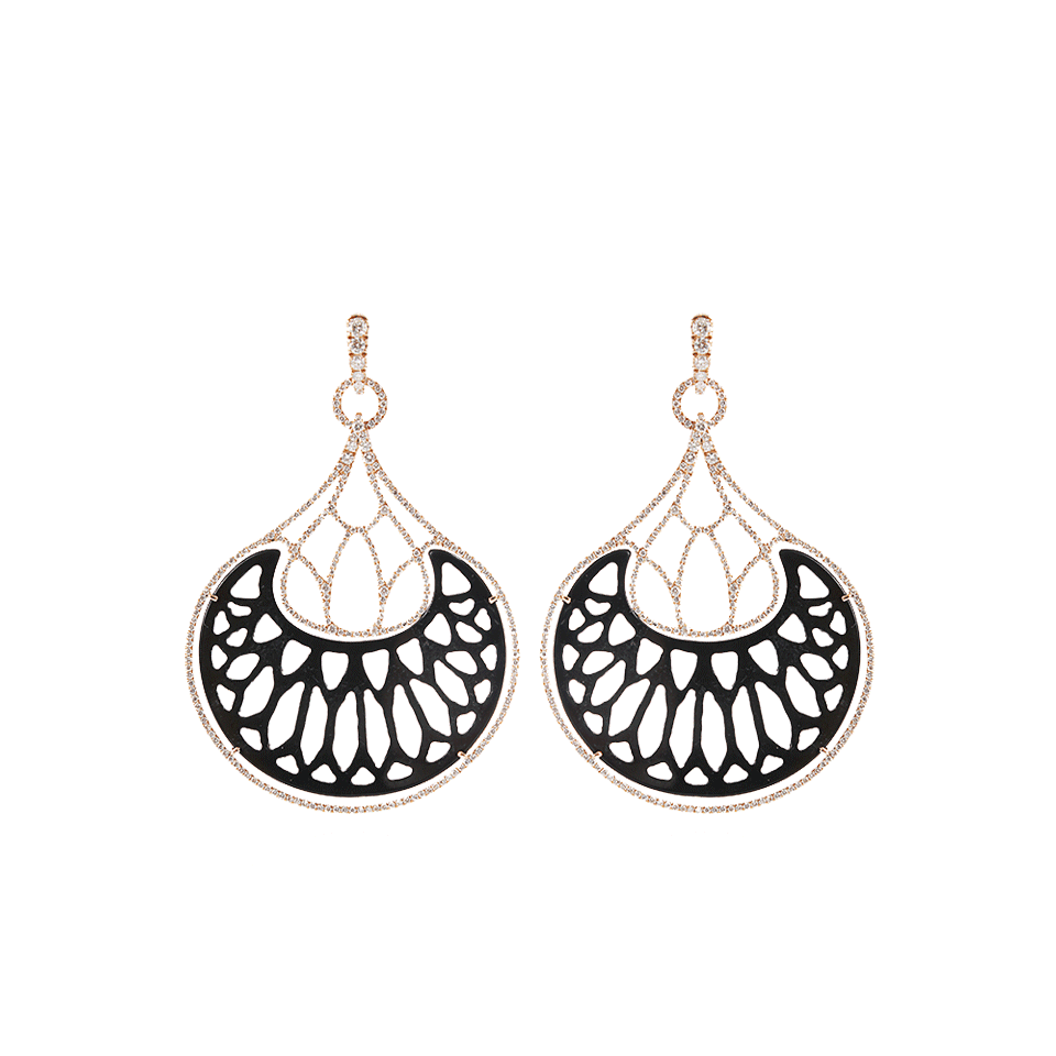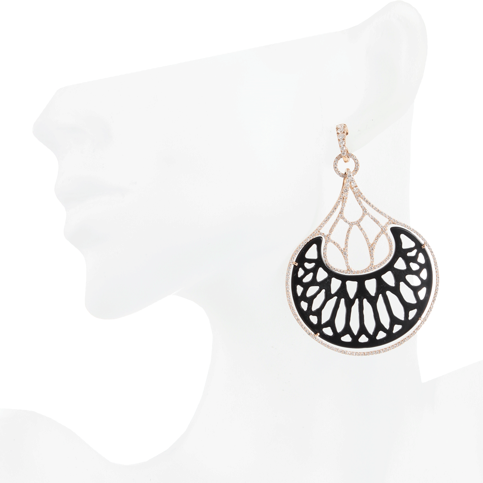 Inbar's onyx and diamond hand-carved earrings are an out-of-the-ordinary sensation. Their hand-carved fan detail is striking and gives them an almost old-world aesthetic. Dangling amongst wavy tresses, these gleaming beauties will hold your attention from the minute you lay eyes on them.