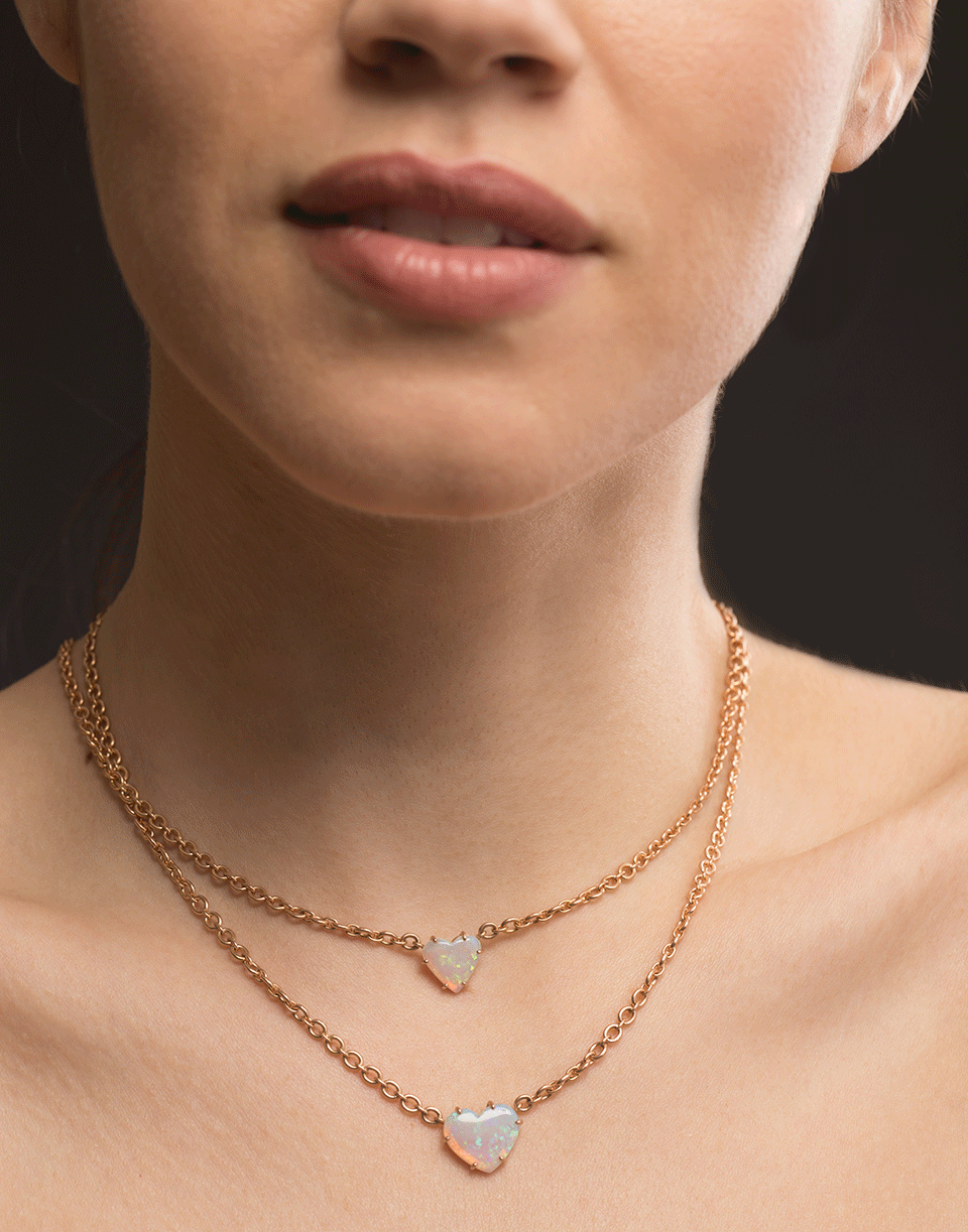 Irene Neuwirth opal heart necklace set in 18k rose gold.