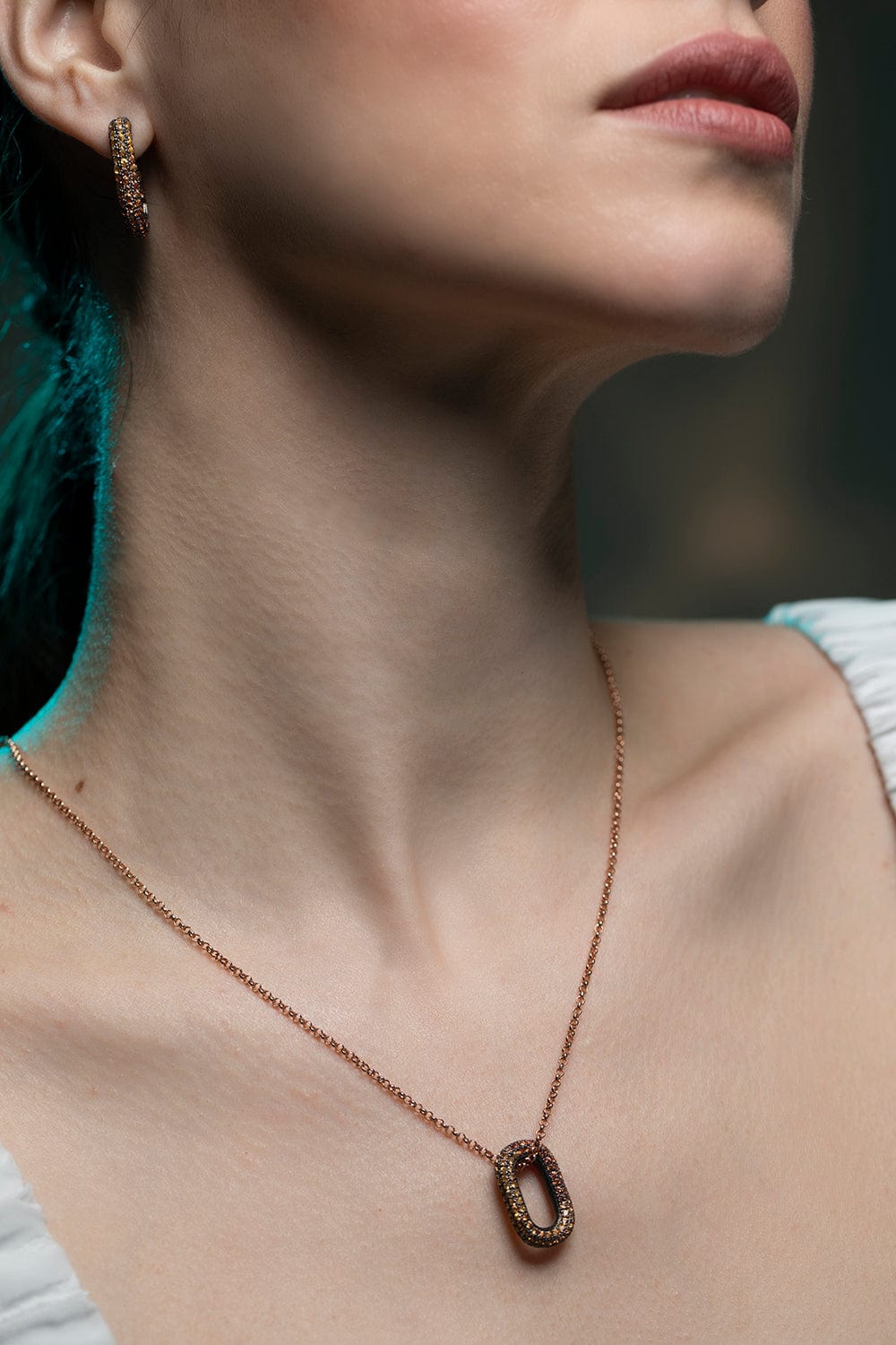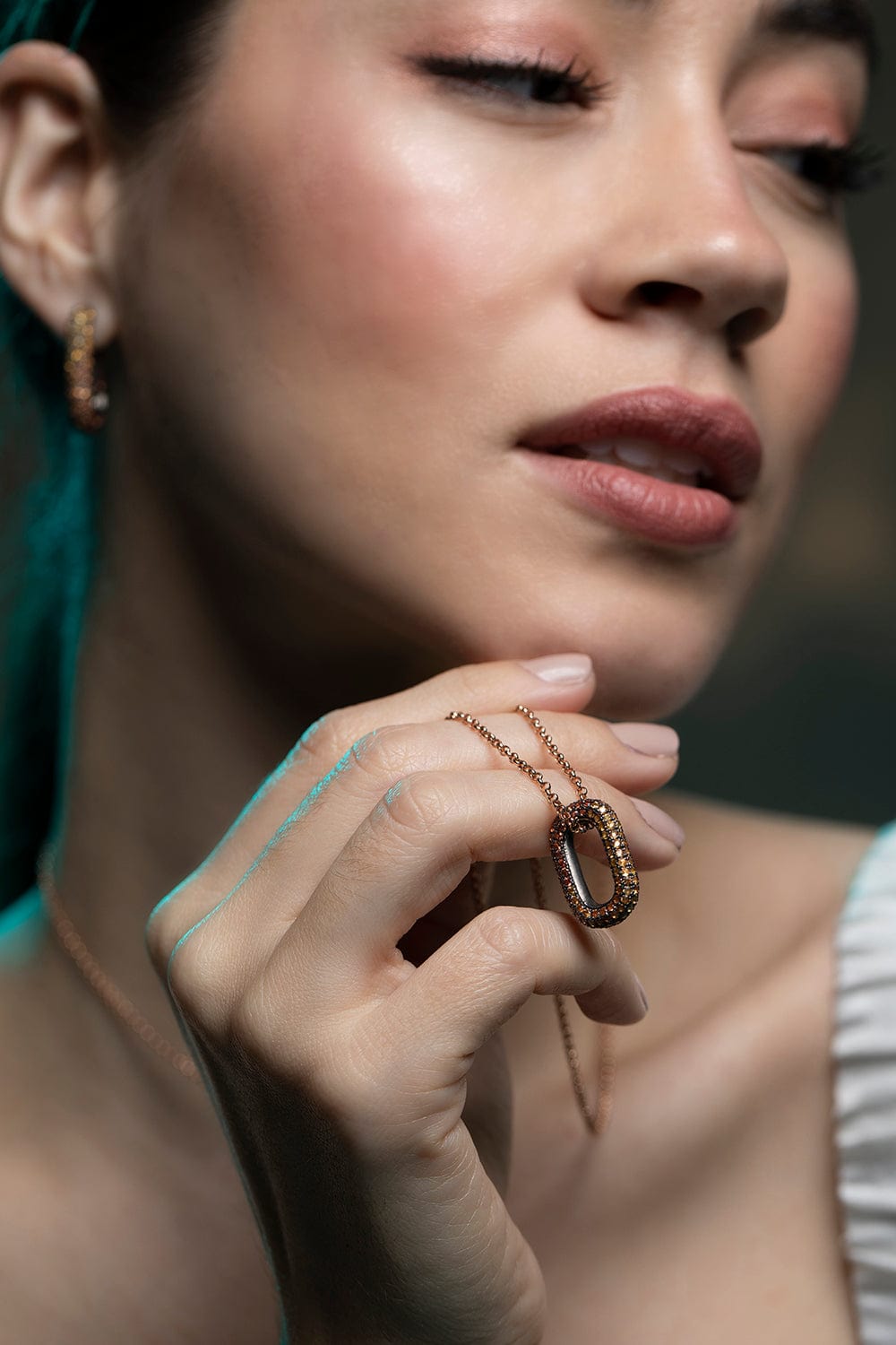 Selim Mouzannar rose gold and silver pendant necklace set with ombre orange sapphires.