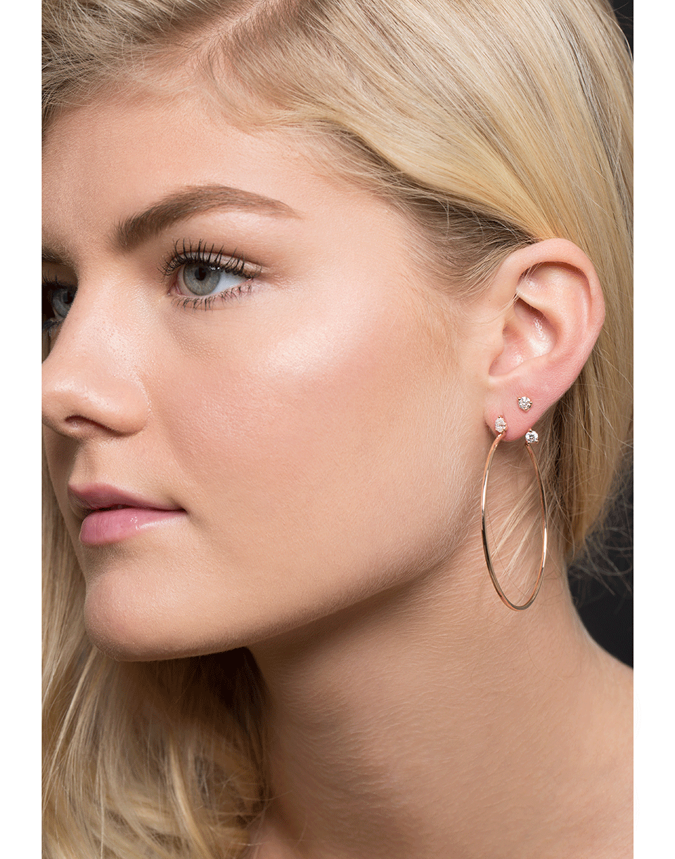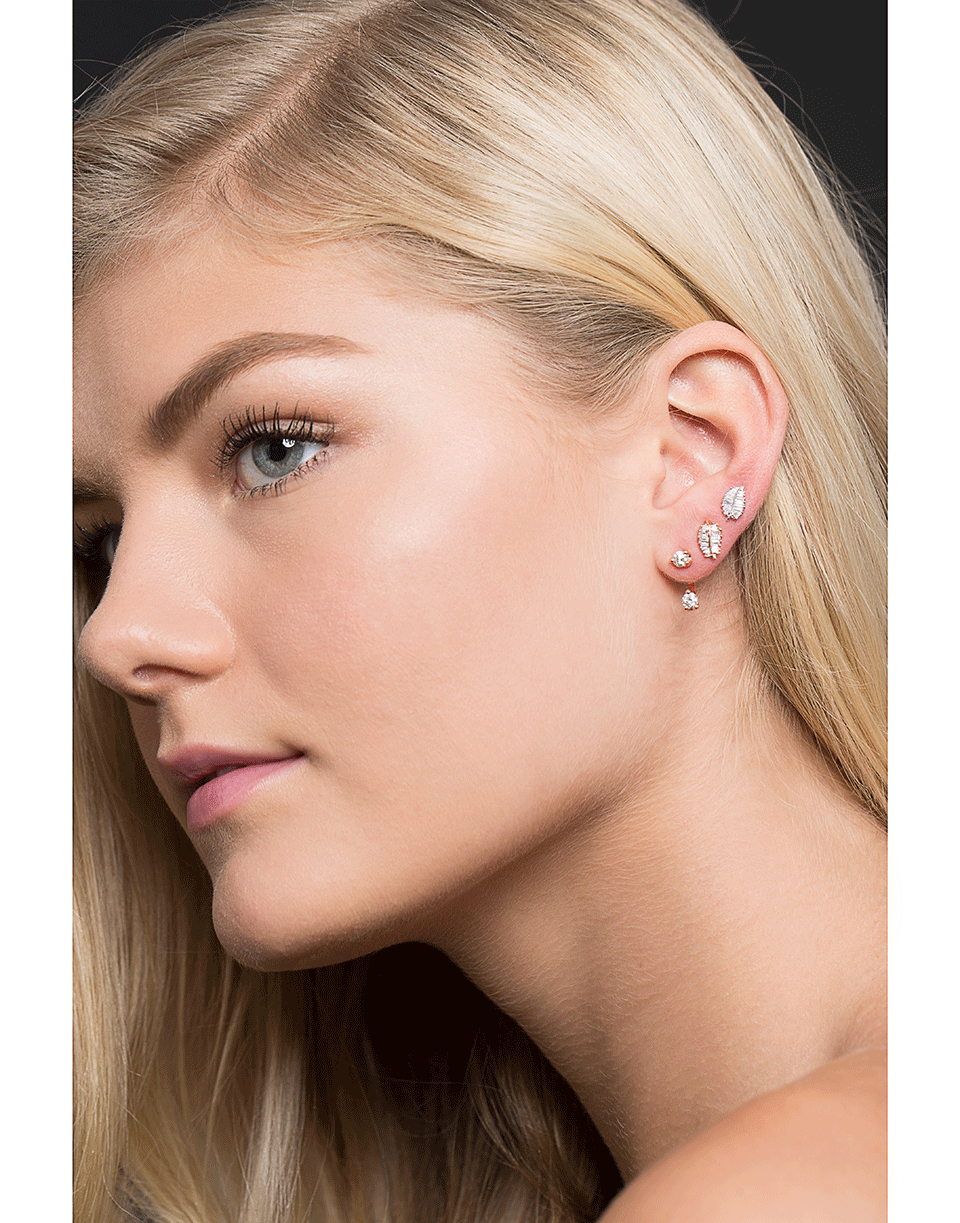 Orbit diamond earrings for pierced ears. 15mm length and hug the ear lobe.