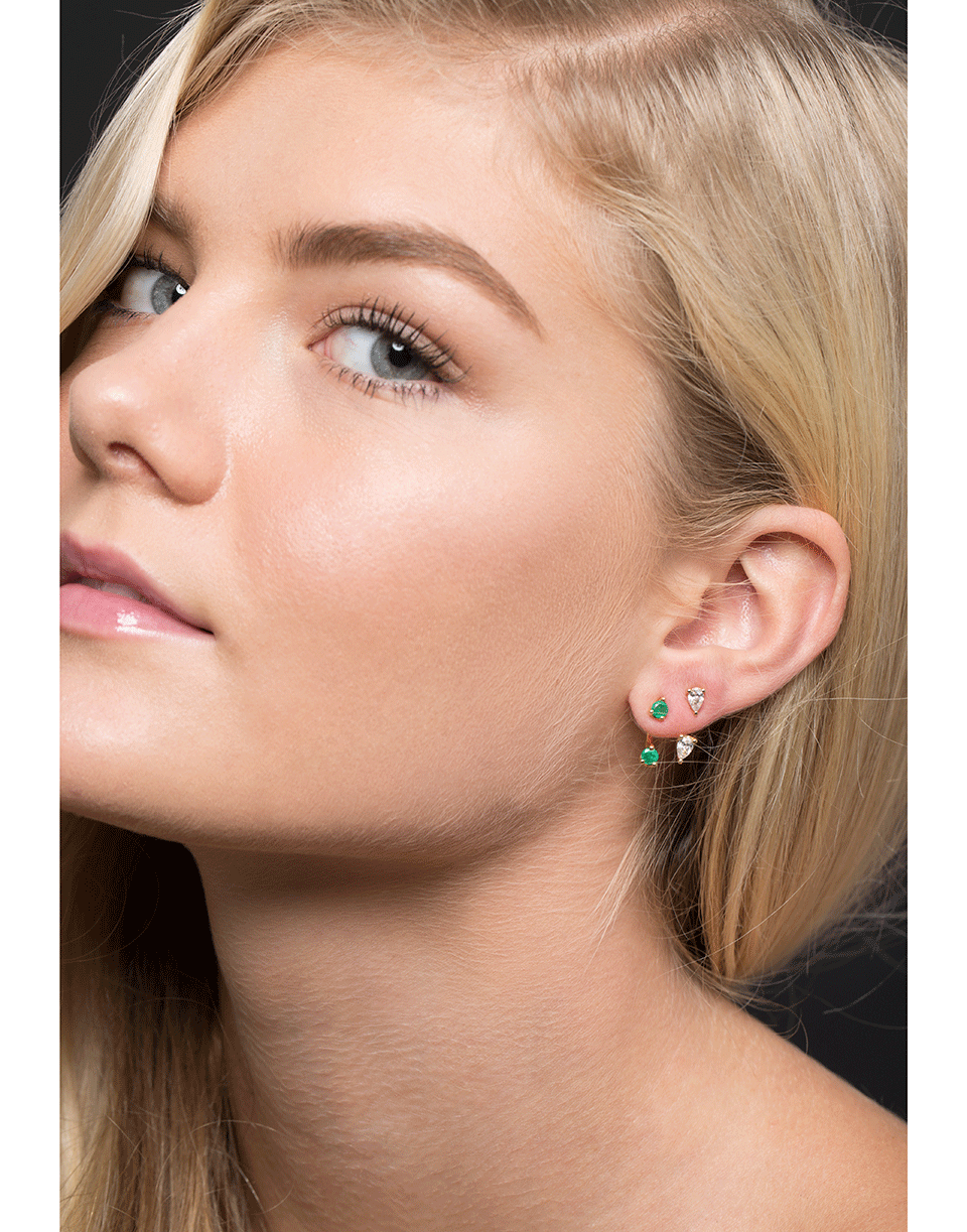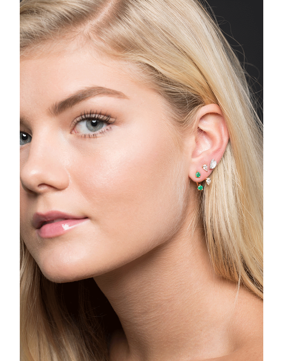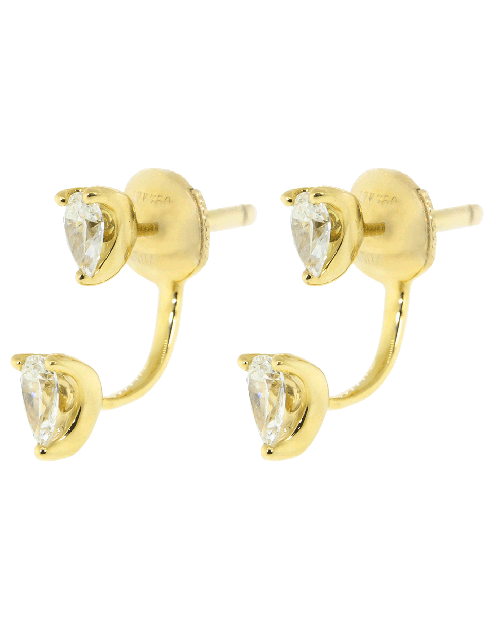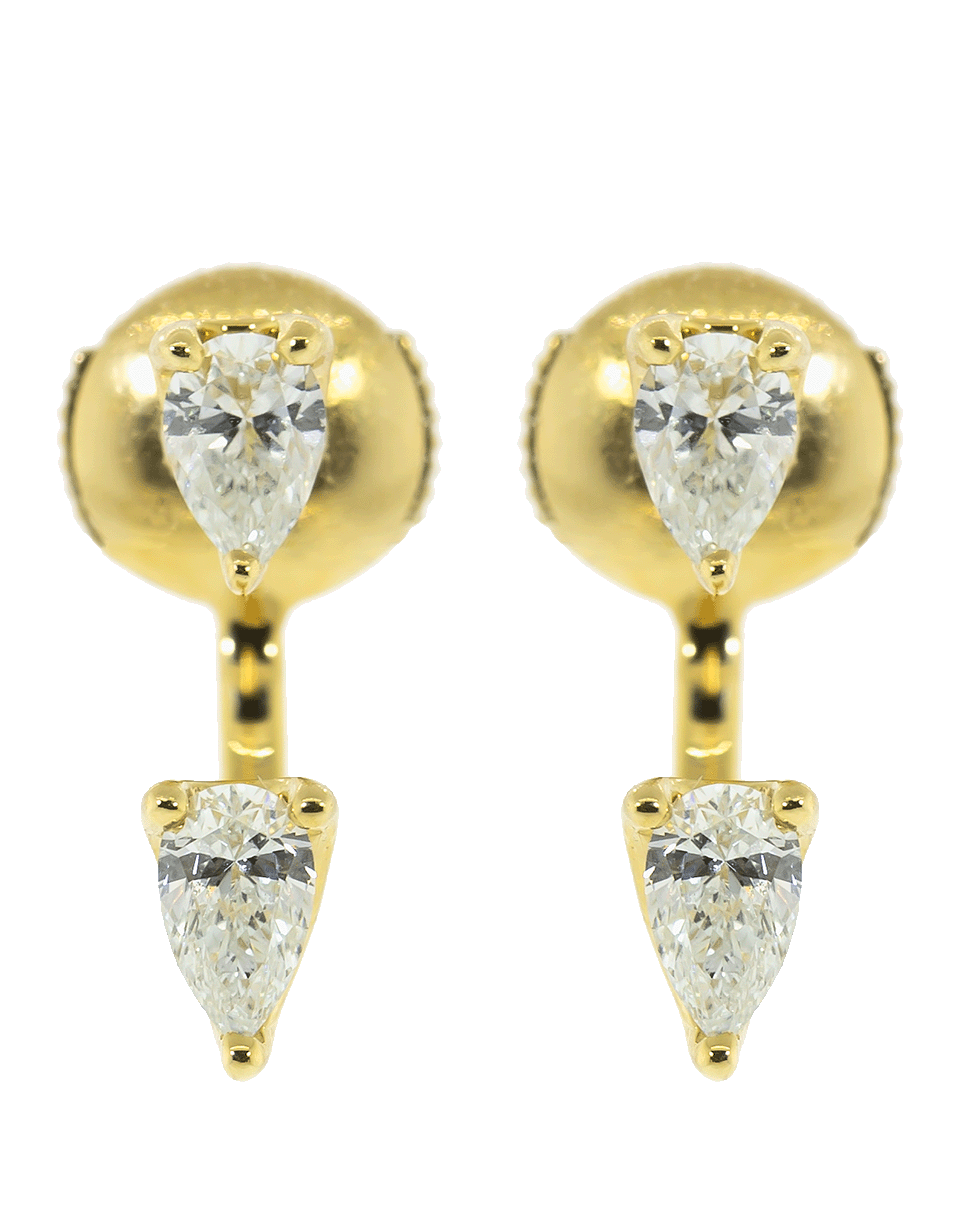 Orbit pear shape diamond earrings for pierced ears. 17mm length and hug the ear lobe.