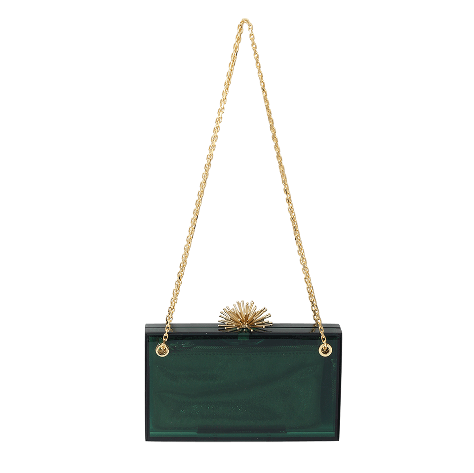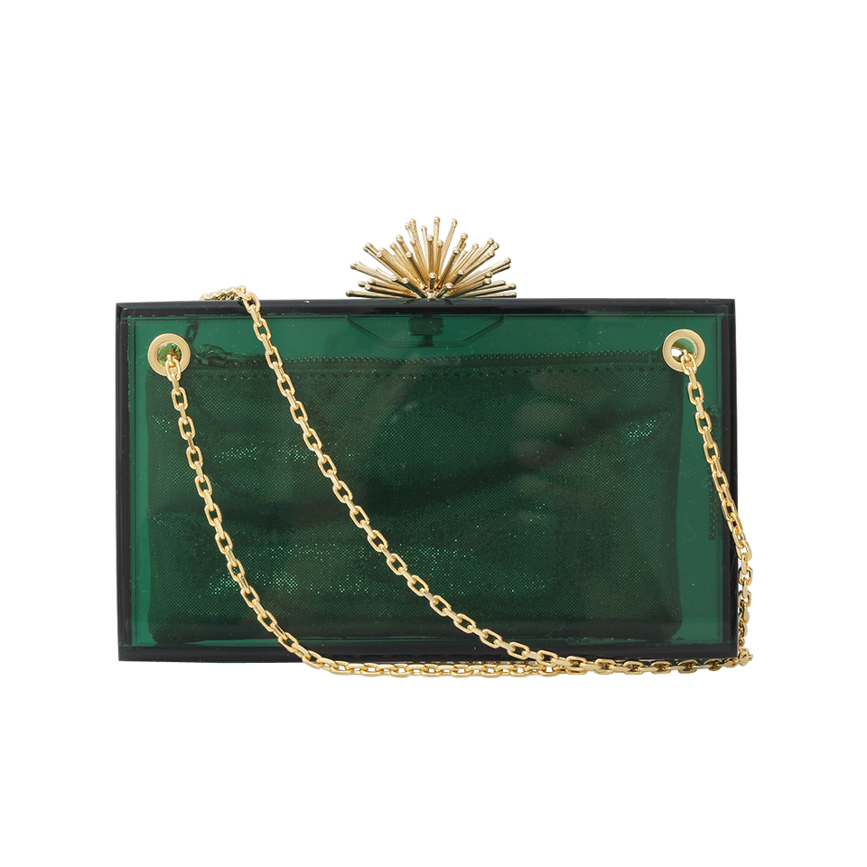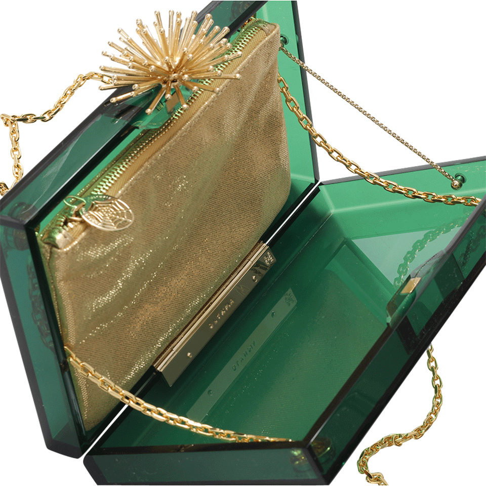 Orbital Top Clasp Closure And Hinged Bottom, Transparent Emerald Outer, And Gold Hardware