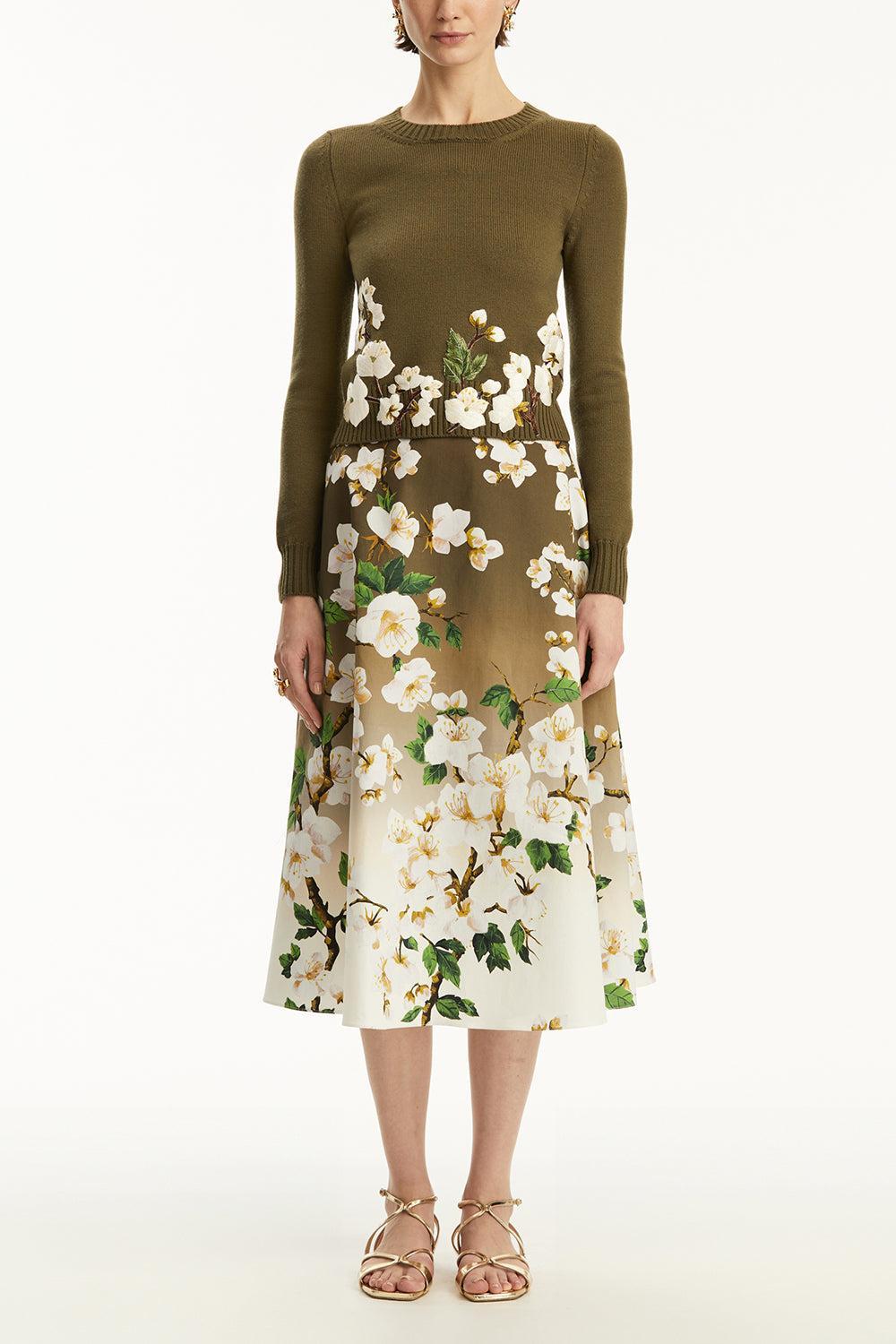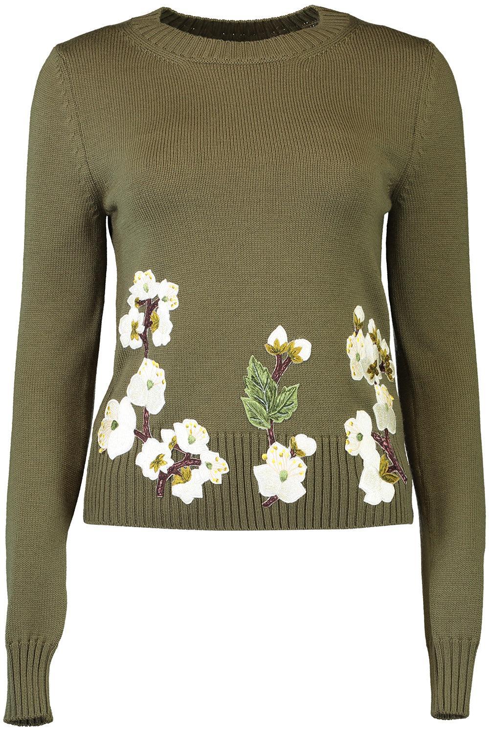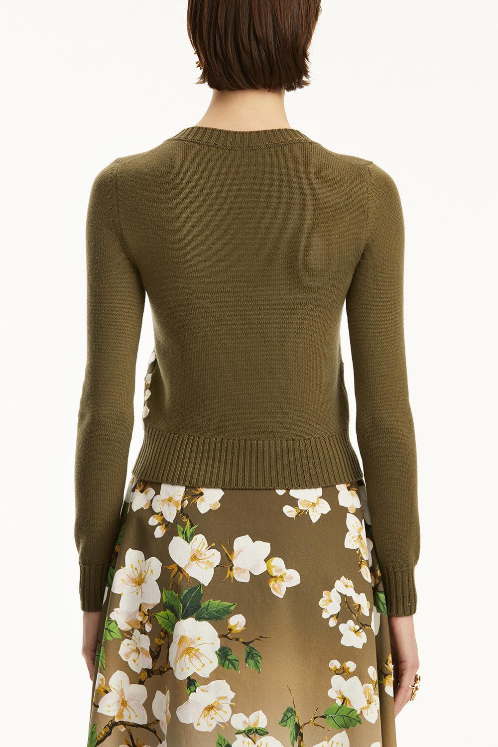 Oscar De La Renta cherry blossom embroidered pullover in khaki.
