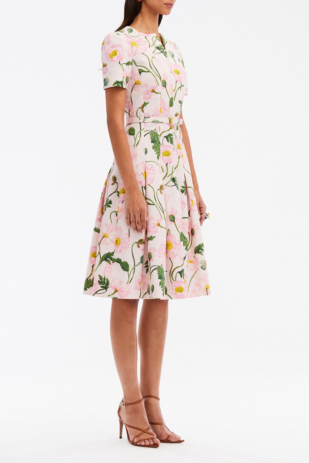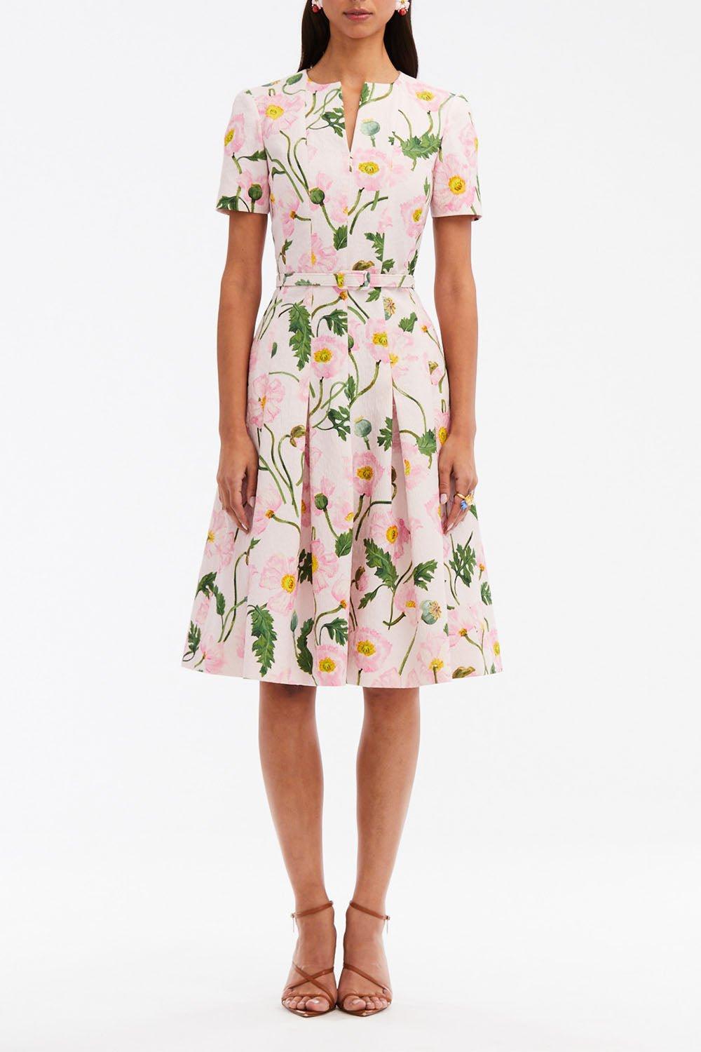 Oscar De La Renta cloque flare dress in pink\soft pink.