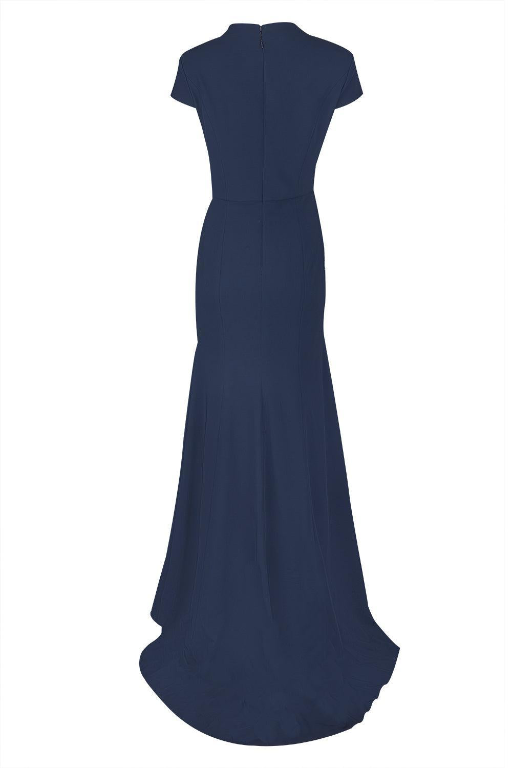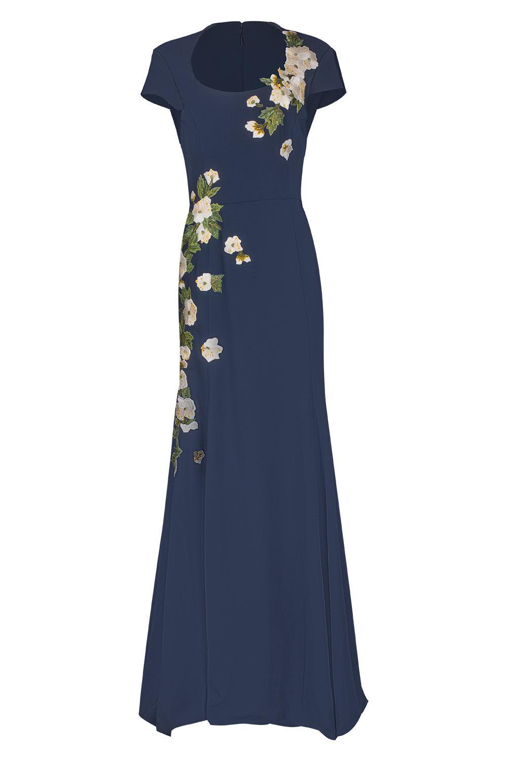 Oscar De La Renta embroidered cherry blossom gown in navy.