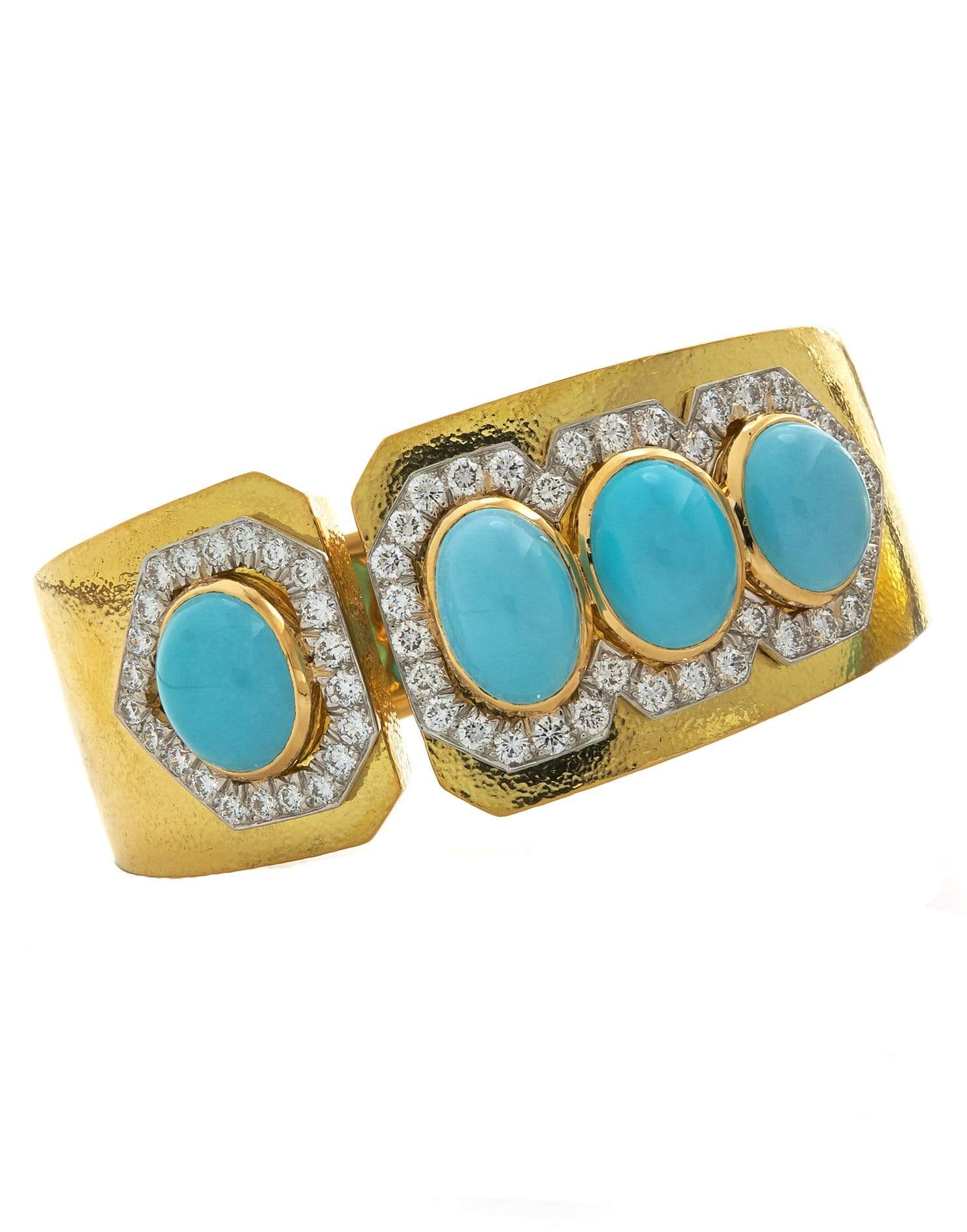 David Webb bracelet with oval cabochon turquoise and brilliant-cut diamonds.