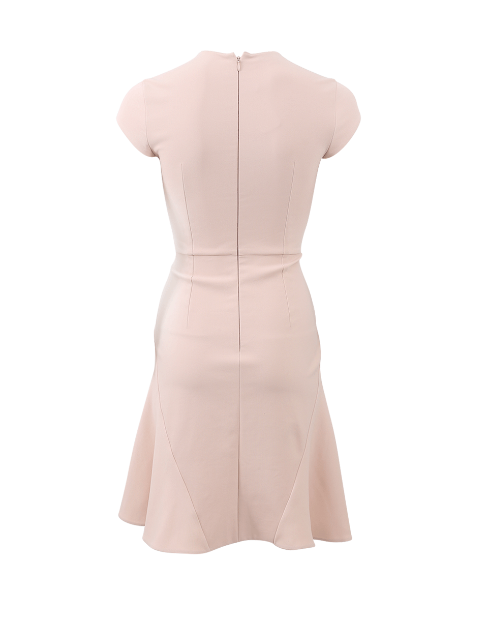 Jewel Neckline With Back Zip Closure, Cap Sleeves And Side Seam Panels