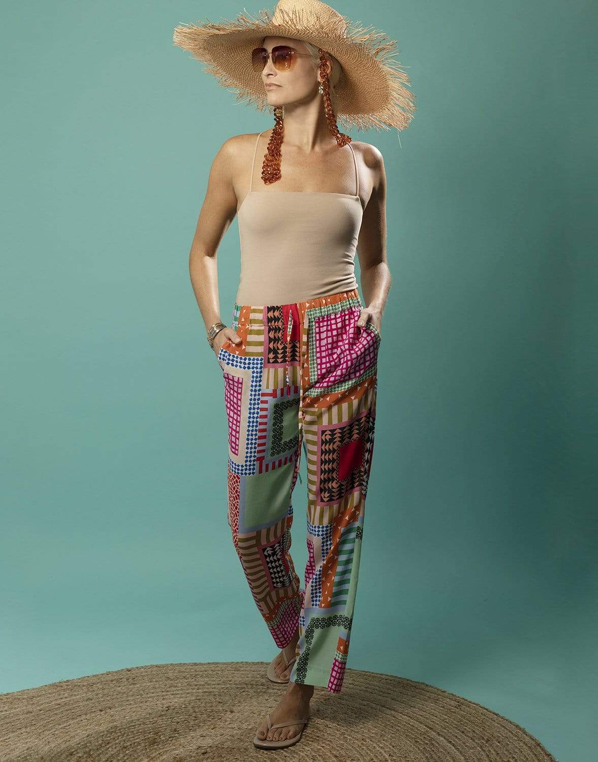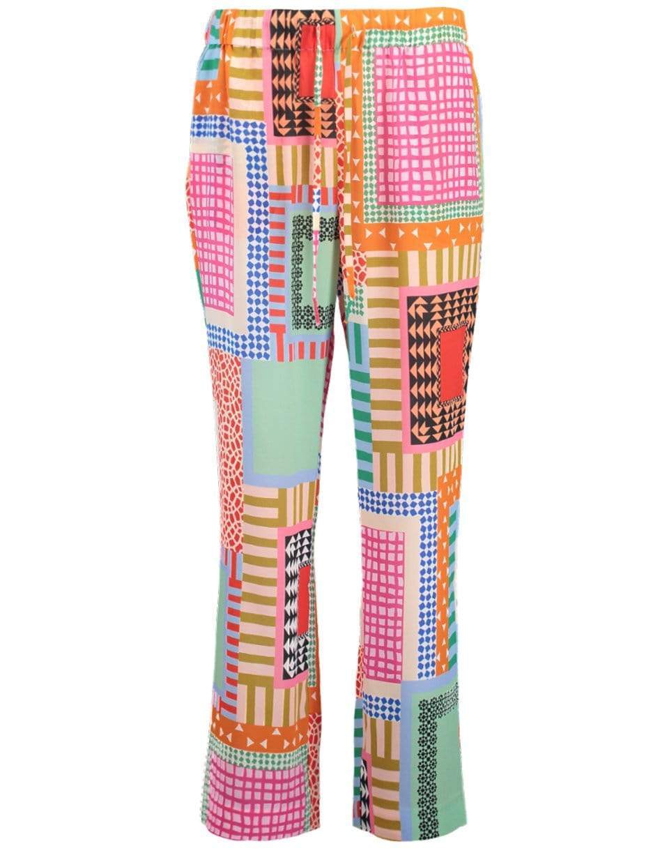 Saloni Paige-C printed silk crepe trouser with drawstring tie waist.