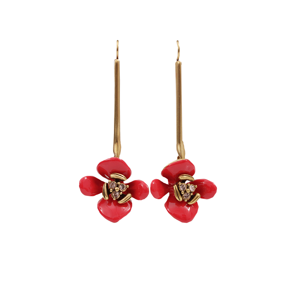Drop your ears with a blossming touch in captivating rouge with Oscar de la Renta's painted flower drop earrings.